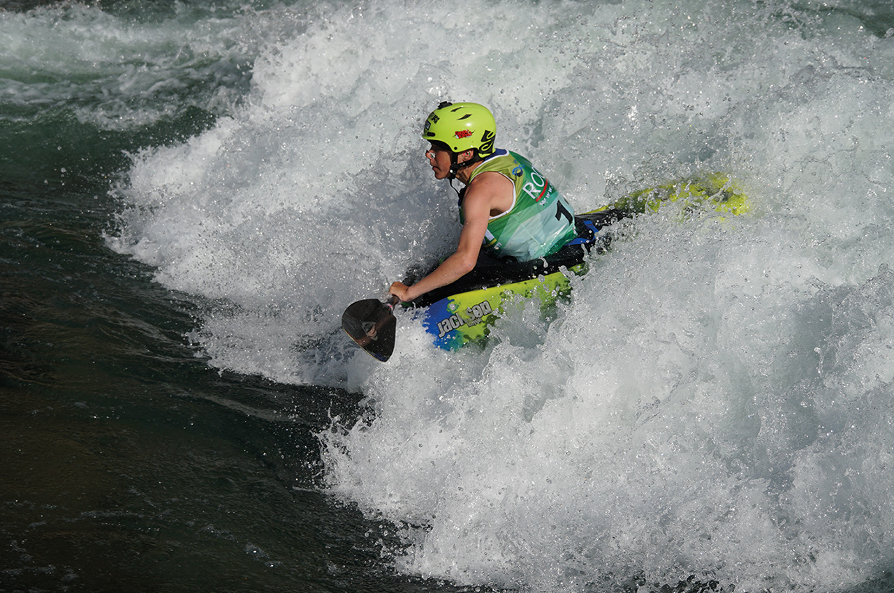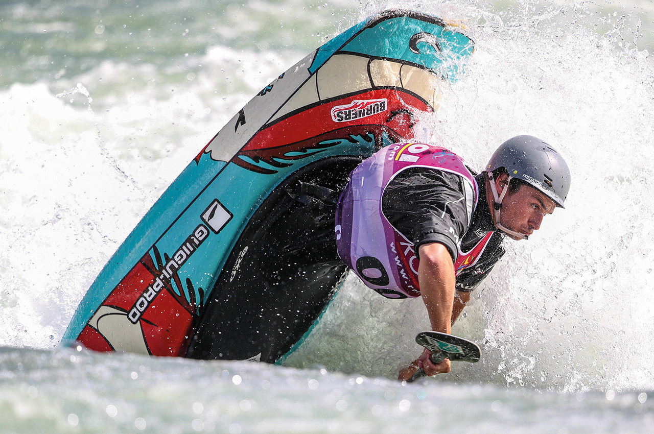 Using the same freestyle boats as the K1 category, athletes compete in a kneeling position using a single-bladed paddle. England’s James Ibbotson (‘Ibbo’, organiser of the NFL/Nottingham Freestyle League and the European Open) would be looking to make finals after climbing the rankings over the years, finishing a very respectful eighth in Argentina. Unfortunately it was not to be his year, finishing 14th ahead of fellow competitor Adam Ramadan in 17th.