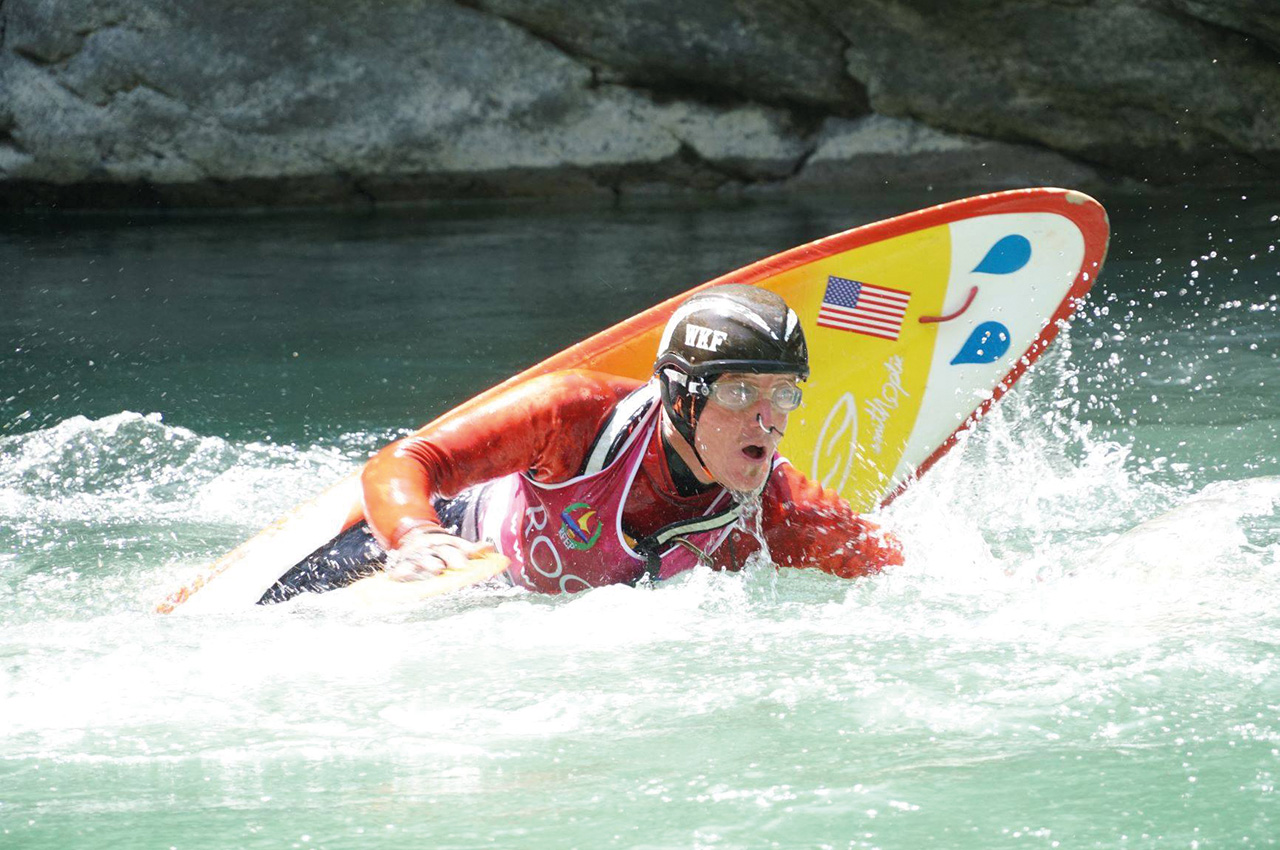 A routine would consist of one or two mystery moves (the longer underwater the bigger the score) combined with as many freestyle moves as possible. Some of these you might recognise if you follow float boat freestyle. You’ll see such moves as cartwheels, tricky woos and bow stalls, but others such as the one-armed bandit, washout and screwing around are exclusive to squirt boating.
