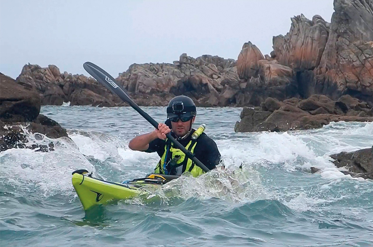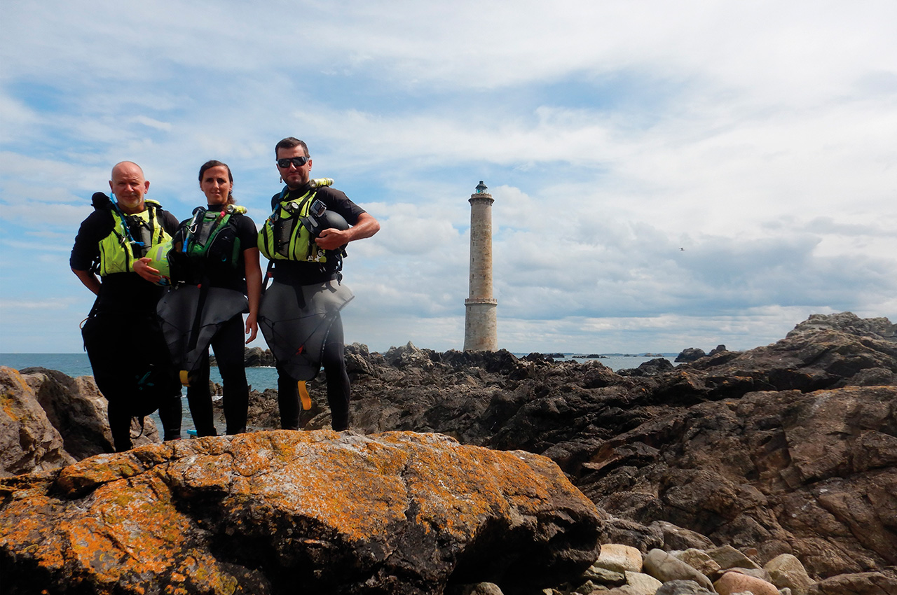 Since we were already familiar with the area there (although we were still discovering new things), we had a plan. We wanted three things: First of all, a paddle to Les Héaux lighthouse. That’s a distinctive landmark on a rock formation some 4 km offshore. The current there is relentless, but with good planning, it isn’t a problem at all to reach it and get back. Secondly, we wanted to circumnavigate the island itself, and lastly, we wanted to do rock gardening and rescue training explicitly aimed at this environment. Let’s try to tick all of these boxes!