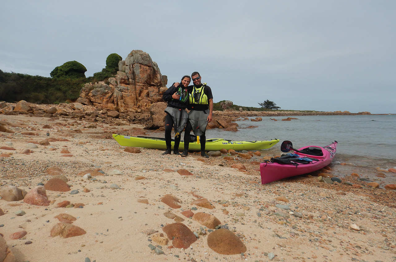 This lighthouse was also built on a rock formation. You probably hear it coming. Yes, we also needed to climb on this, just for the fun of jumping back off in the azure-coloured water to be rescued by the others. ‘Just touring’ is nothing for us, therefore we have too much energy! We’re like dogs chasing cars! We see something; we must get on it, paddle in between it, or paddle over it! End of day 1 when setting back foot on Loguivy beach! Planned items 1 and 3 ticked off!