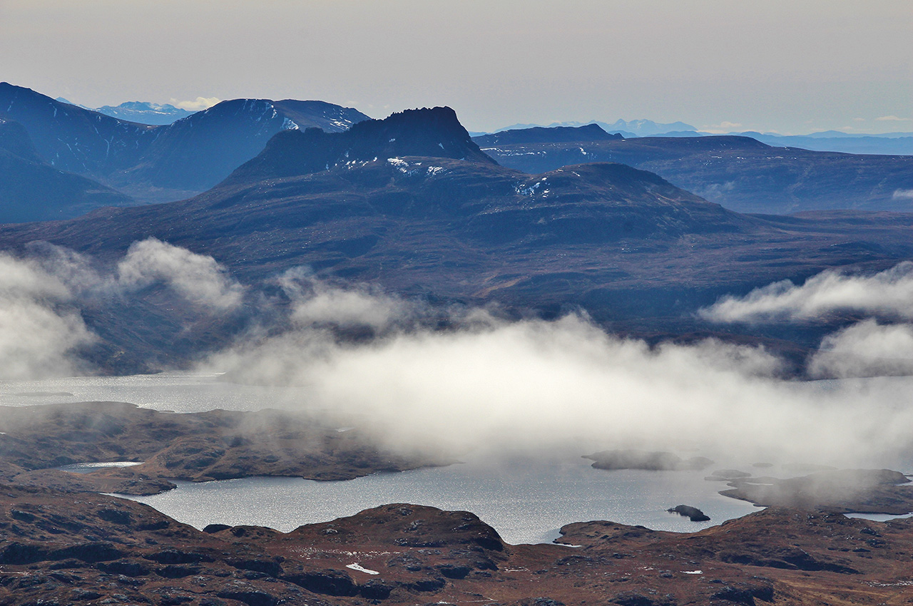 The following morning was fabulous. As we rose, mists swirled around us, but we could sense brightness above. Suddenly, the clouds broke and above us rose the magnificent outline of the remarkable spine of Suilven, that most dramatic of peaks. We climbed it that day, most of us, a day of pure joy as we sat on the ridge and gazed down on the stupendous landscape of Inverpolly below.