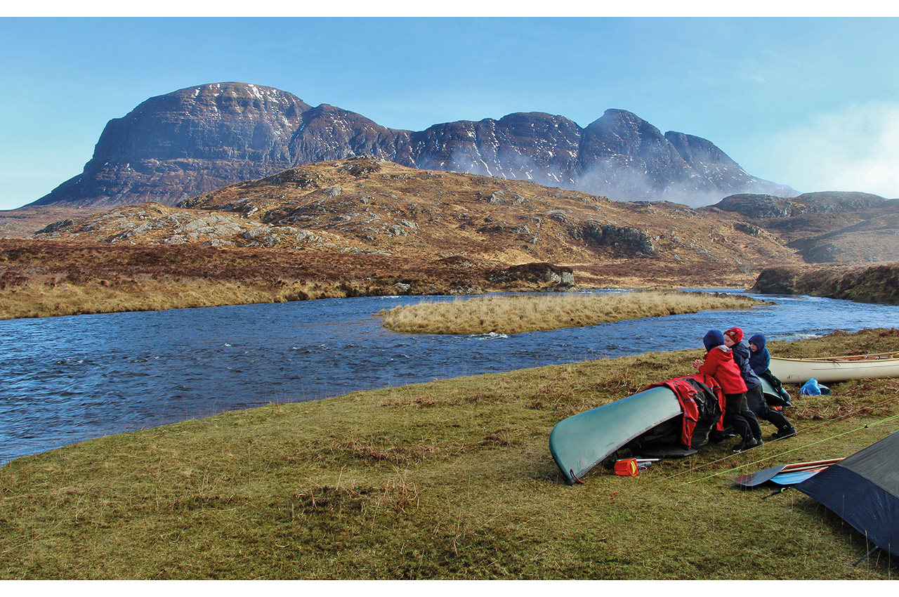 A few years later, and we returned to the area to paddle on Loch Lurgainn. Not an expedition, as such, as we spent three nights in one place and only did two short portages, but it was still a wonderful trip, living beneath the towering hills of Cul Mor and Beag, Ben Mor Coigach, and the ridiculous pinnacles of Stac Pollaidh. A perfect beach and a small woodland was a wonderful adventure playground for the kids, and one of the best wild camps I’ve known.