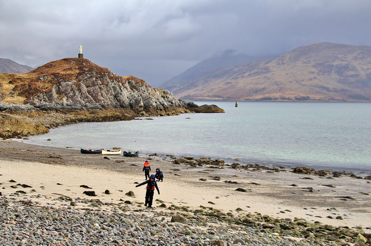 The head of Loch Shiel is these days better known for the viaduct at Glenfinnan and its associations with Harry Potter, as well as its place in history as a gathering place for Bonnie Prince Charlie and his doomed followers. Its also the starting point of one of the best canoe touring trips in the Highlands, and one Easter a few years back found us on its shores, contemplating the adventure ahead. We would paddle the length of this huge loch, before dropping down a short river to the sheltered bays of Loch Moidart on the coast, followed by a slightly scary, for a first-time sea paddle, rounding of a headland into Loch Ailort.