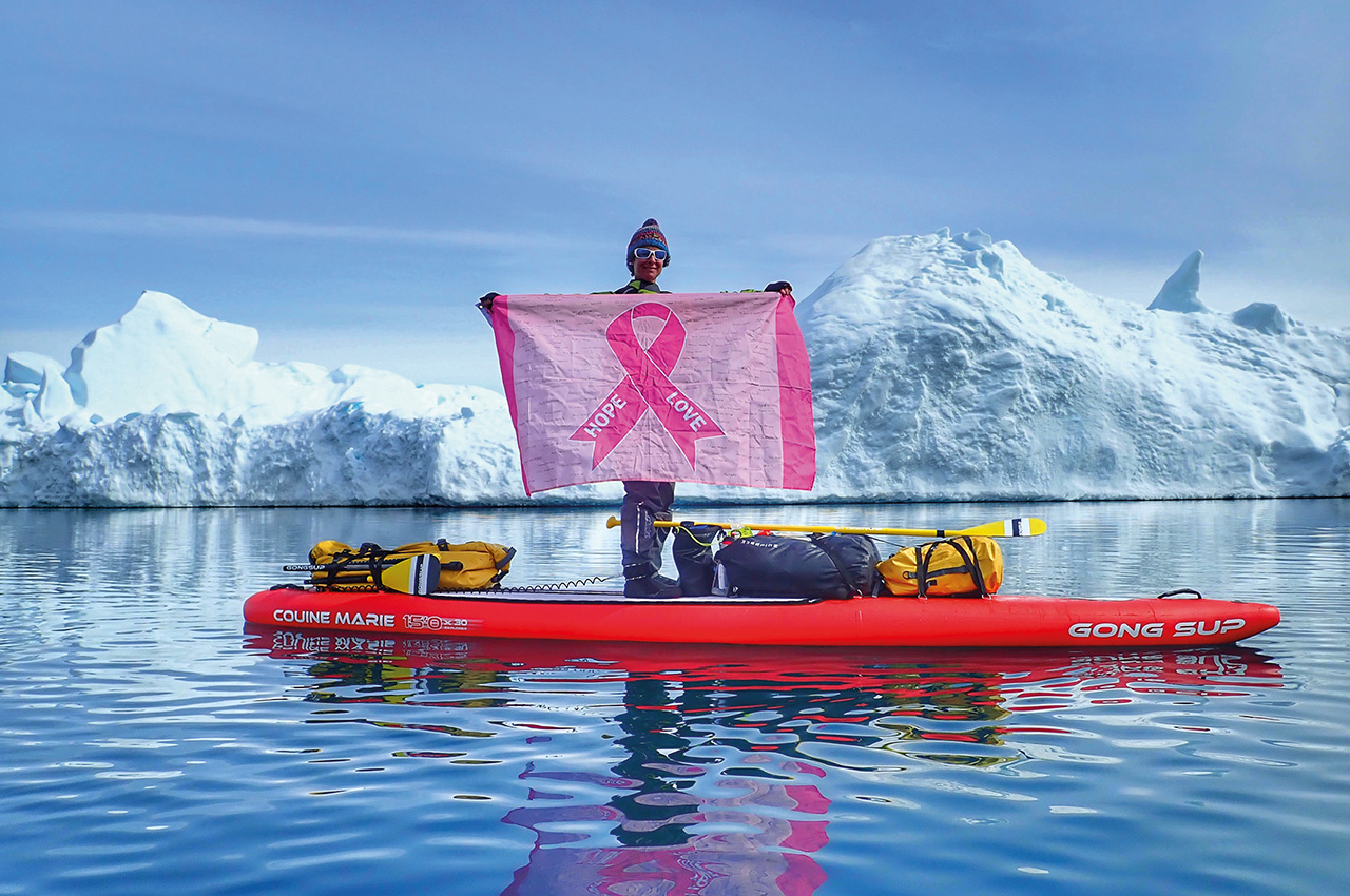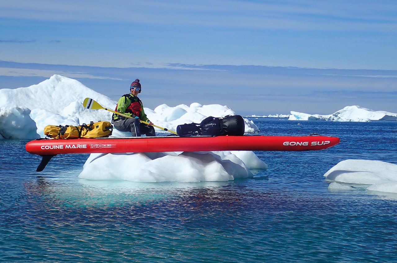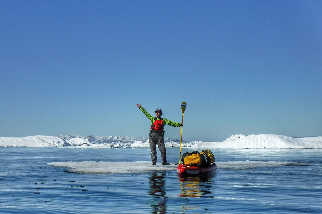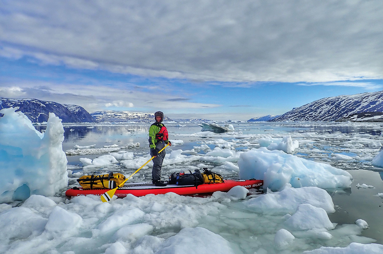 Ingrid’s expedition was to SUP in the middle of Baffin Bay, which is isolated for the most part of the year by the polar stream glaciers that come straight down from the icy Arctic Ocean, until they end up turning into ice floe.