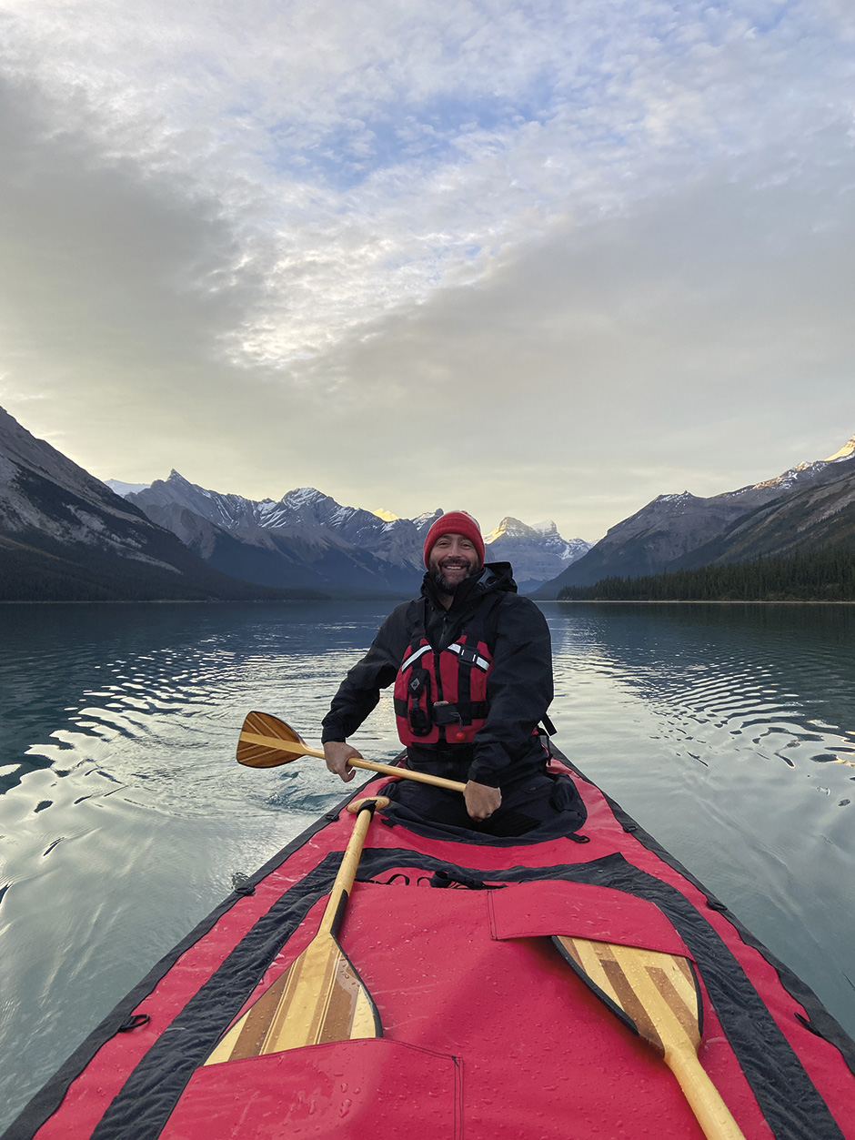 But first, we had to get there. Yan flew to Terrace, and Charles was already living the van life in British Columbia. Daniel and I drove with the canoes on top and all the gear in the pickup truck bed. From Montreal to Terrace, it’s a 5000 km drive. It was a magical road trip across Canada. Driving through the Canadian Rockies was epic and spectacular. It took us four days to cross our beautiful country. We made a quick stop in the province of Alberta to paddle the famous Maligne Lake.