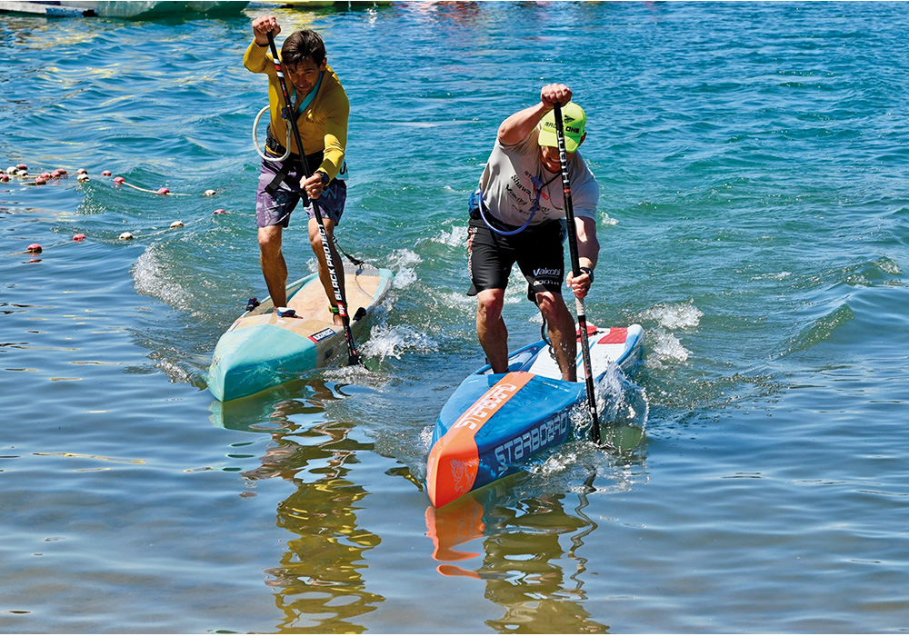 Day four of the event was Tech racing and held on a different ‘bigger’ beach at the lake – not much bigger to be fair, but certainly enough for ten paddlers to start together and surrounded by a couple of jetties for excellent viewing. Matty from Total SUP was on the mic all weekend and invited me to join him at some point. Having worked with him before, I would not let the opportunity pass!