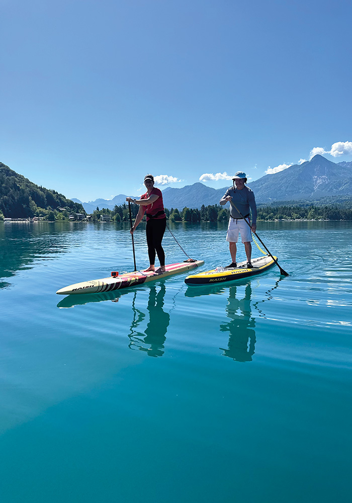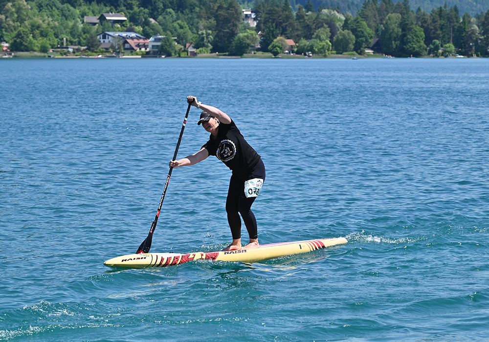 On the day of my birthday, we left Italy to travel to Austria, taking scenic routes through the mountains. We stopped by a wonderful cheese factory, where we had lunch and purchased some treats. Arriving later at Faaker See, our accommodation could not have been better – right on the lake and only 200 yards by paddleboard to reach the race venue! That evening, we wandered down to register, grab our race vests and catch up with old and new friends. A ‘city’ race had been held that day in nearby Villach as part of the festival, and just before prize-giving, the race director and his team organised for me to appear on the podium for a lovely rendition of ‘Happy Birthday’ in my honour – so sweet!