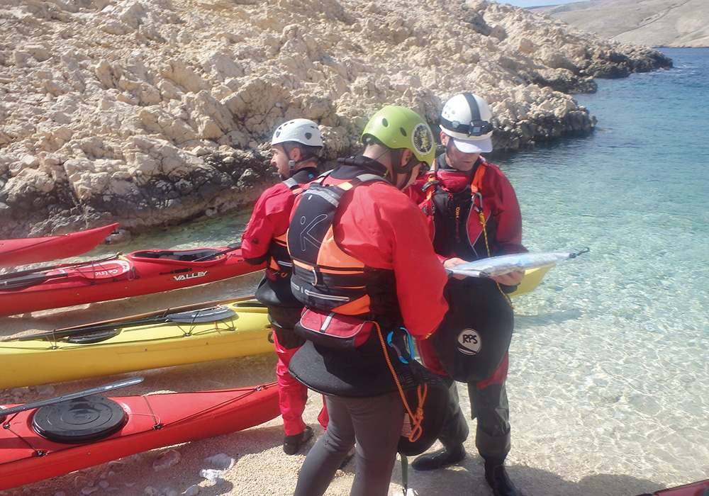 In recent years, the sea kayaking communities of Hungary and the UK have forged a partnership through Felfedezők Explorers Sea Kayaking and Sea Kayaking Wales (SKW). Explorers, coaches, and community members have travelled to Anglesey and Pembrokeshire to join SKW for adventures and advanced training, taking full advantage of Wales’s renowned tidal race coastal features and progressively challenging sea conditions. Now, the collaboration continues in the Adriatic: this September, Explorers Sea Kayaking will host SKW members for a unique experience on Krk, Croatia. Earlier this April, SKW coaches Geth Roberts and Duncan Greene were invited to Krk to sample its exceptional sea kayaking and deliver BCAB (Non-Tidal) Sea Leader Training and Assessments for the Explorers team.