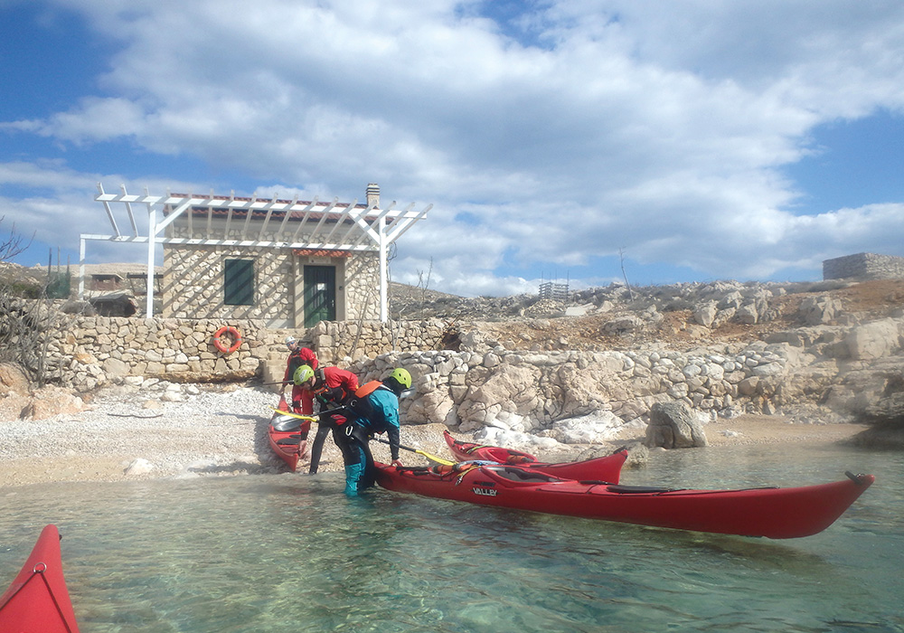 One of Šilo’s unique advantages for sea kayak training is its substantial sea wall. On windy days with a dynamic sea state, the team made great use of this feature for progressive skills development, offering a safe yet challenging environment in which to practice leadership, rescues, and boat handling in real-world conditions.