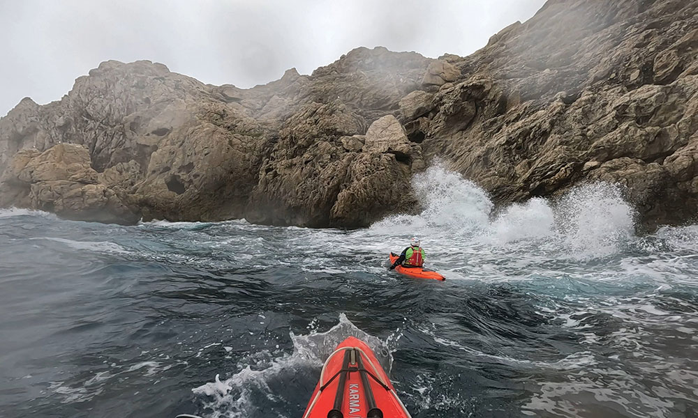 Northern Europe is famous for this type of challenging water, but Mallorca delivers this complexity with warmer air, warmer water, and brighter light. It is playful, technical, and sometimes humbling. Kayaks rise and fall unexpectedly, strokes must adapt instantly, and the feeling of surfing these diagonal rebounds is pure joy. For paddlers looking to sharpen their boat handling without the numbing cold of the Atlantic, this is a natural, high-energy training ground.