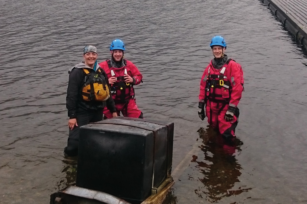 The Fort William Coastguard Team are actively involved in water rescue training on rivers and lochs. They use the facilities of a canoe hire station which is adjacent to their headquarters. They paddle canoes and then do capsize practice so they can experience what it feels like and also how difficult it can be to get back into the canoes.