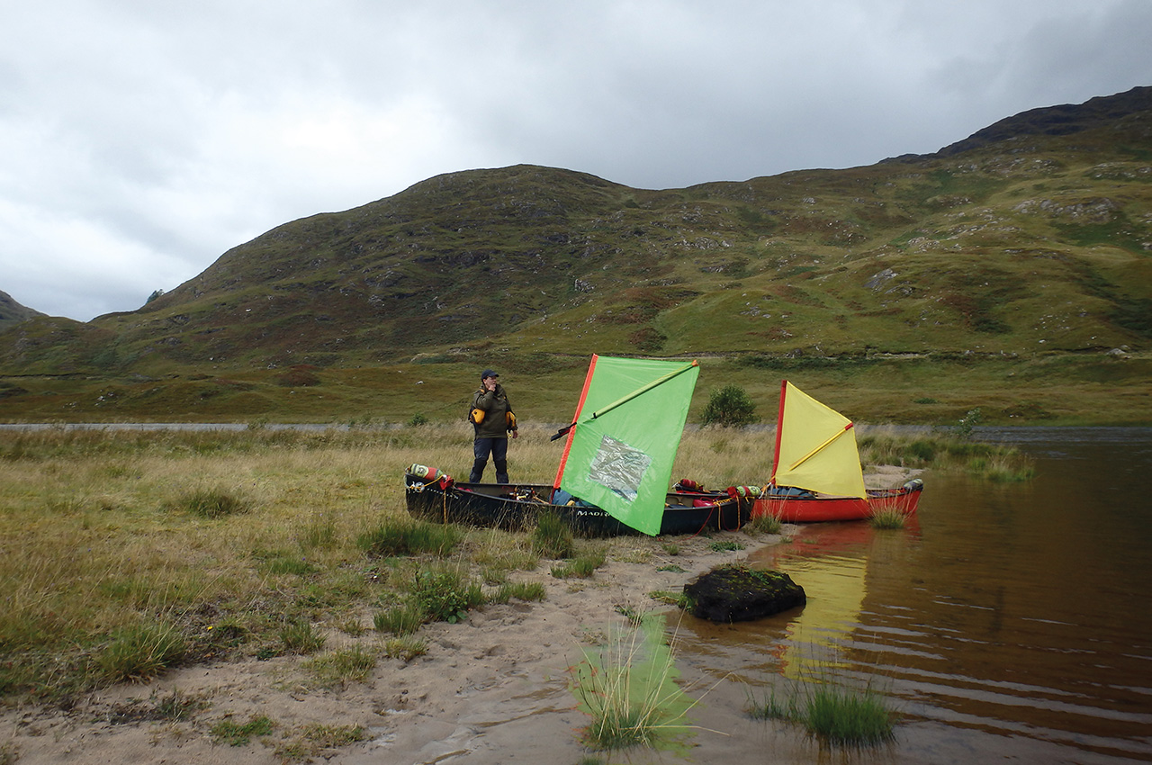 On our previous trip across Rannoch Moor, Adam described me as a ’Class A cheat’ on account of my large Endless River sail with an integral window. Suffice it to say that my superior sail (which is 30% bigger than his and goes to show that size really is everything), which enabled me to accelerate away from Adam at an impressive rate of knots. There was no way that I could slow down unless I dropped my sail completely so I carried on storming ahead whilst Adam trailed behind me in the far distance.