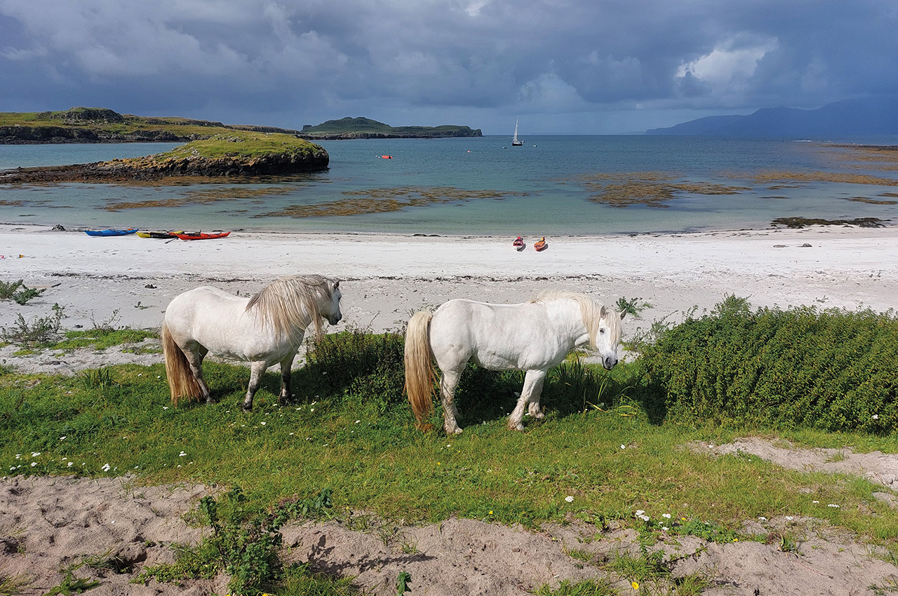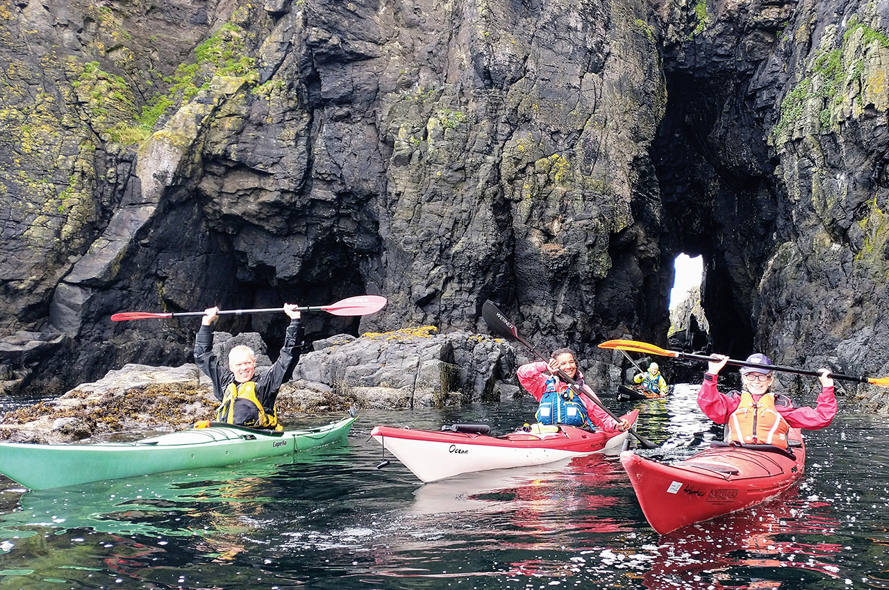Muck’s small size and many bays and headlands gave us the perfect opportunity to experience a variety of conditions and find the right spots to either seek shelter from or engage with the conditions. It didn’t take us long to realise that we were all far more capable than we knew. An eventful midweek circumnavigation of the island revealed that the challenge of sea kayaking lay in adapting to and working with the changeability of conditions.