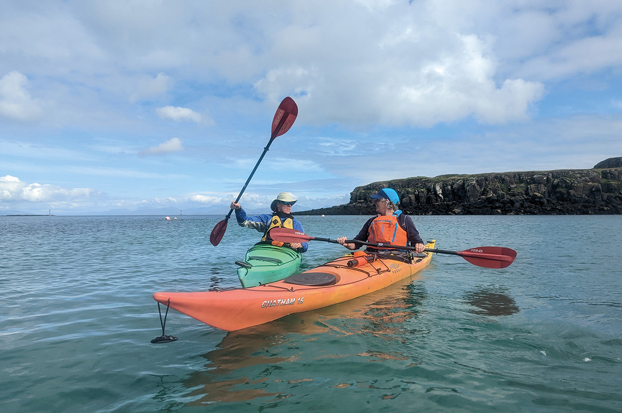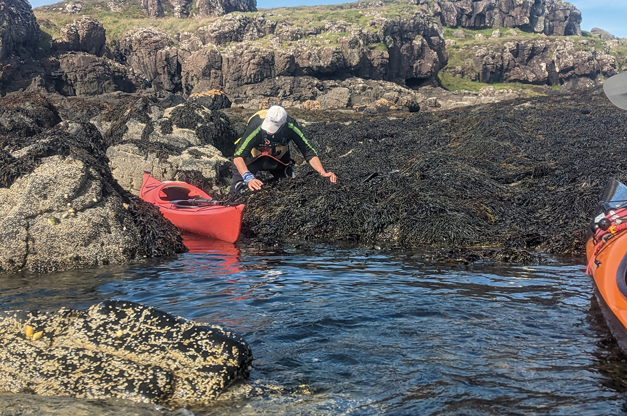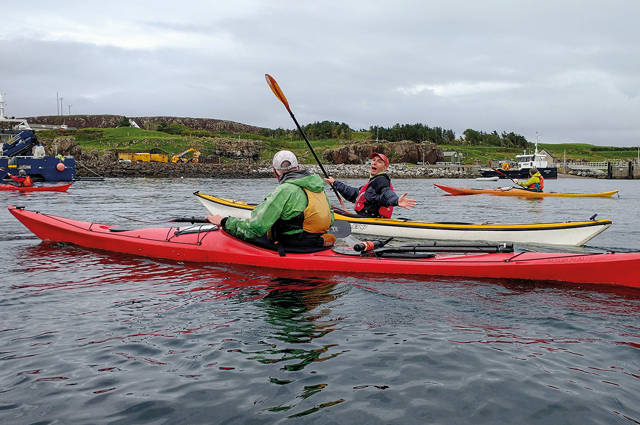 The other enormous benefit was that it allowed us to participate in the daily discussions on weather, tides, navigation and route decisions in a real-world, changing environment. Certainly, this was one of the unique aspects of this introductory programme and the Muck experience. We were prepared to progress as independent kayakers. We were encouraged to participate in the whole process of planning and decision-making rather than being led on a tour of the islands. The world of exploration and journeying from our boats became possible for the first time.
