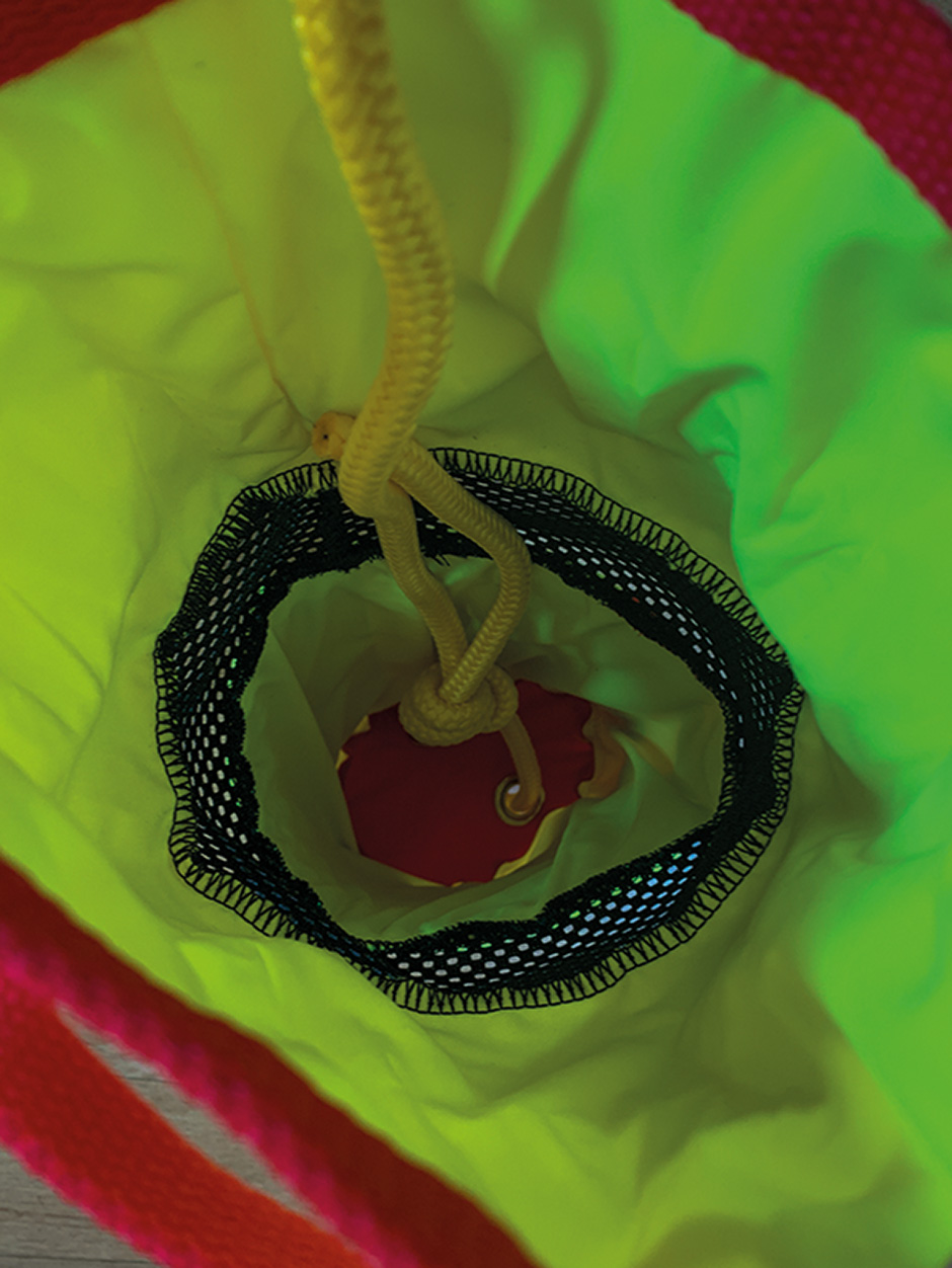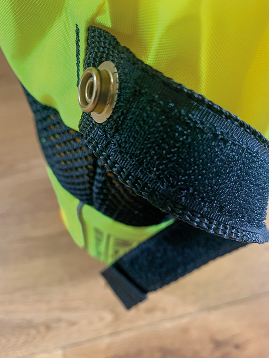 The images of the Nookie Hornet don’t really do the brightness of the hi-vis justice. This thing is super bright (in a good way). A piece of foam inside of the hi-vis area gives additional floatation to the bag as well as making the rope easier to deploy and repack.
