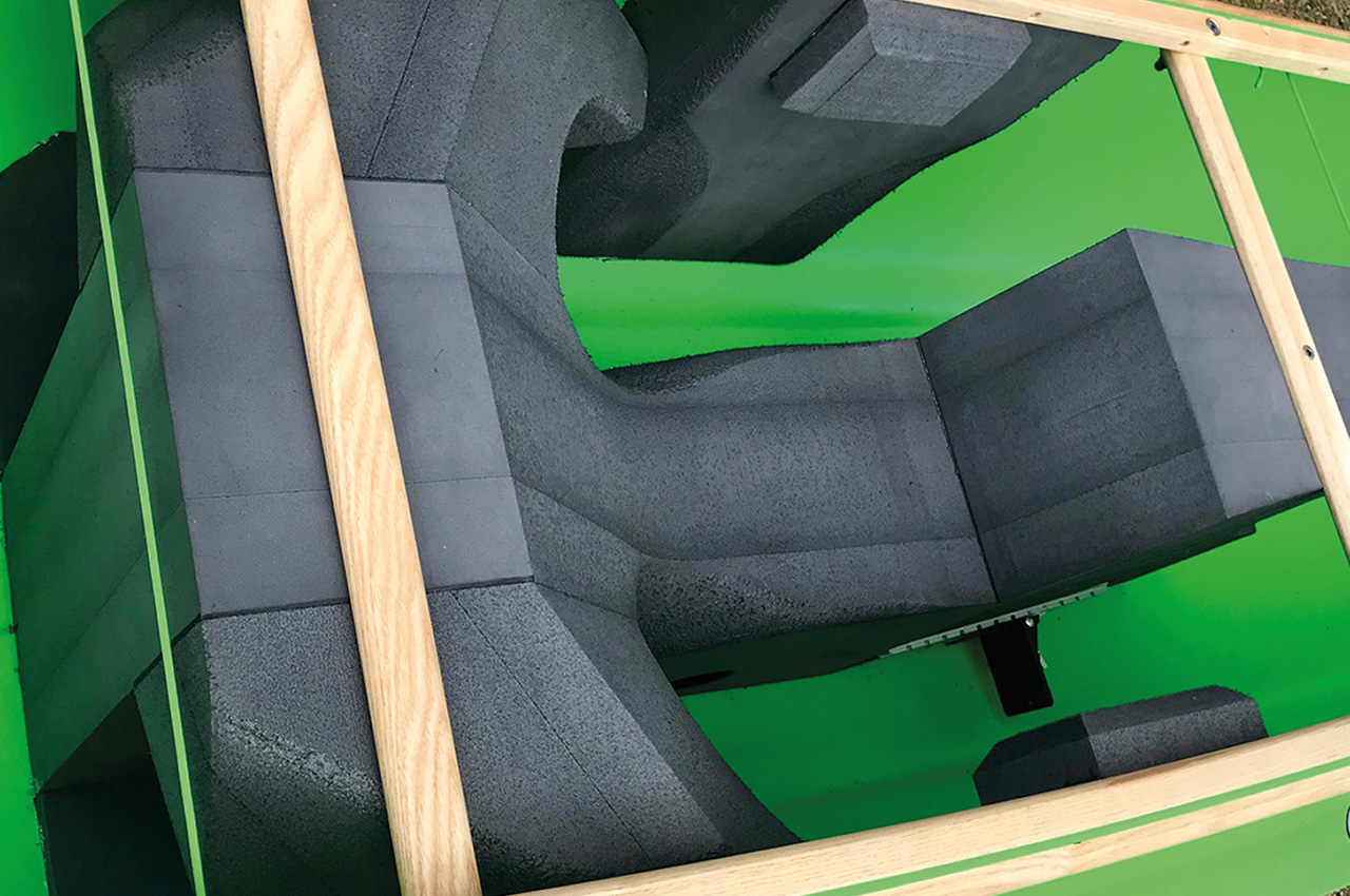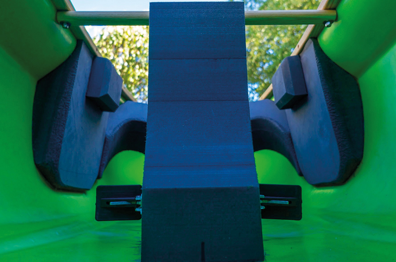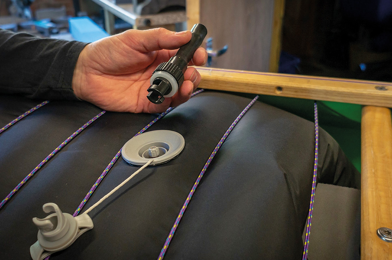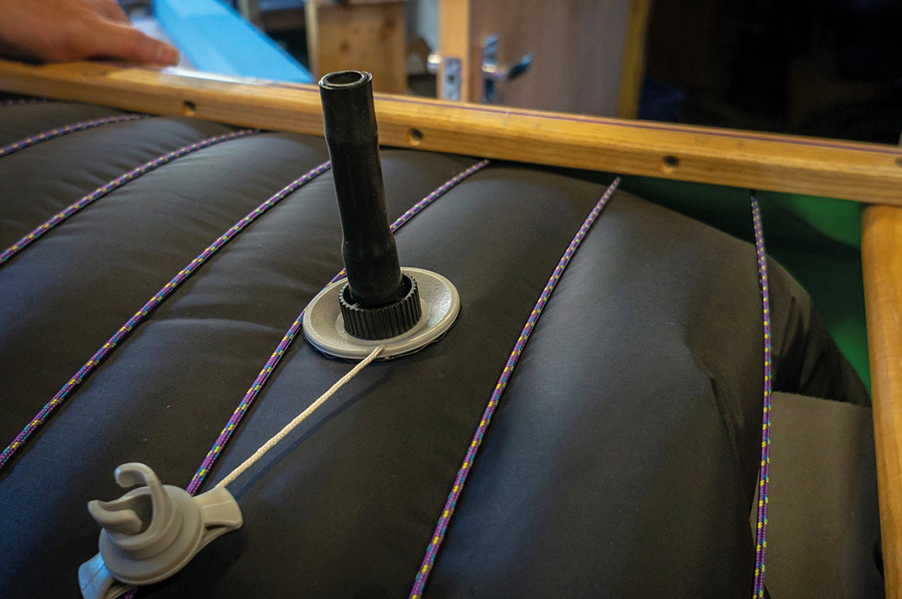 Airbags are a key component, not just to add floatation to the boat but also to displace water. Fully inflated, airbags ensure that water cannot migrate underneath them, helping to achieve a light and manageable boat.