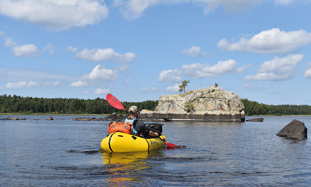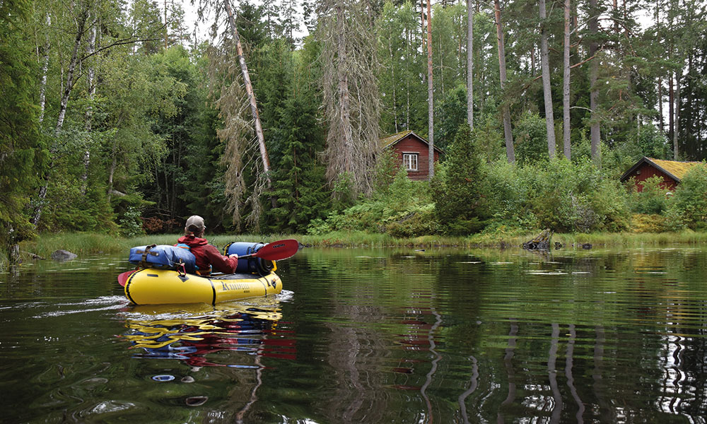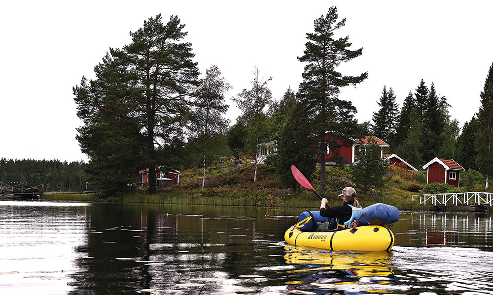 The packrafts handled the bouncy waves very well. The headwind just required a little thought about how to apply trim to assist our forward progress, as the area abounds with islands, from bare rocks just showing above the water to those with seasonal habitation in the form of the classic red-painted Swedish cabins. The variable landscape, inlets and reeds along the water’s edge, along with a variety of wildlife, including cows wading in the sea shallows, provided an enjoyable paddle in a fantastic island paradise.