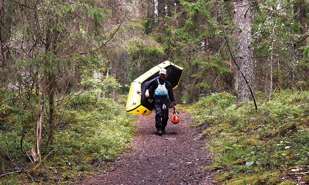Their main advantage is their light weight (4.1 kg), making them highly portable. The fact that they only need to be inflated to around 1-2 psi can easily be done using either a manual bellows system (supplied by the manufacturer) or a small electric pump (Feather pump). It literally takes one minute to inflate the packraft. This means you get rapid access to the water from unpacking the raft to setting up and paddling off.