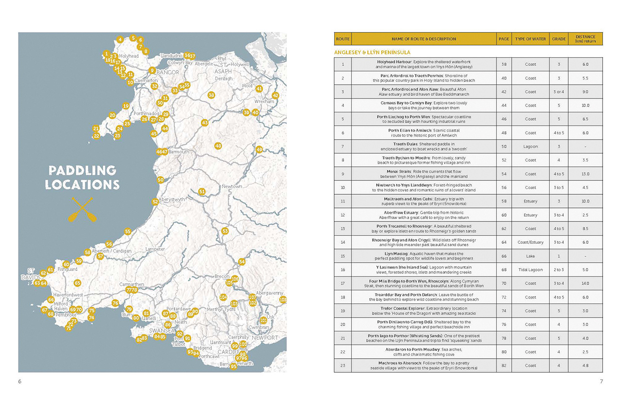 This new publication is in the same format as the previous book and has a great weight and feel to it in your hands – being a ‘paper’ book lover, this is so important to me. Inside, it is set out similarly, with contents and a numbered map with a corresponding information table for each route – this includes the route and description, type of water, grade and distance of paddle. It is easy to decide where and what type of paddle you want, especially if you are beginning your sup journey and can clearly differentiate between easy and more challenging paddles.
