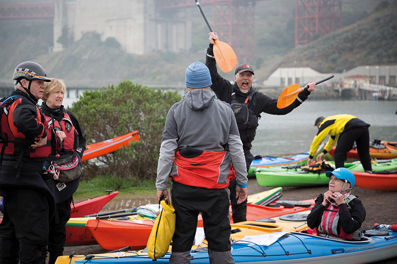 The tribe gathers at The Bay Model in Sausalito for dinner and Saturday night entertainment that includes a short kayaking film presented by the ocean whitewater crew, Neptune’s Rangers, and an inspiring presentation by Justine Curgenven, a serial sea kayak explorer. With bellies full of good food, beer and wine, we head back to the hostel for a well-earned night’s rest.