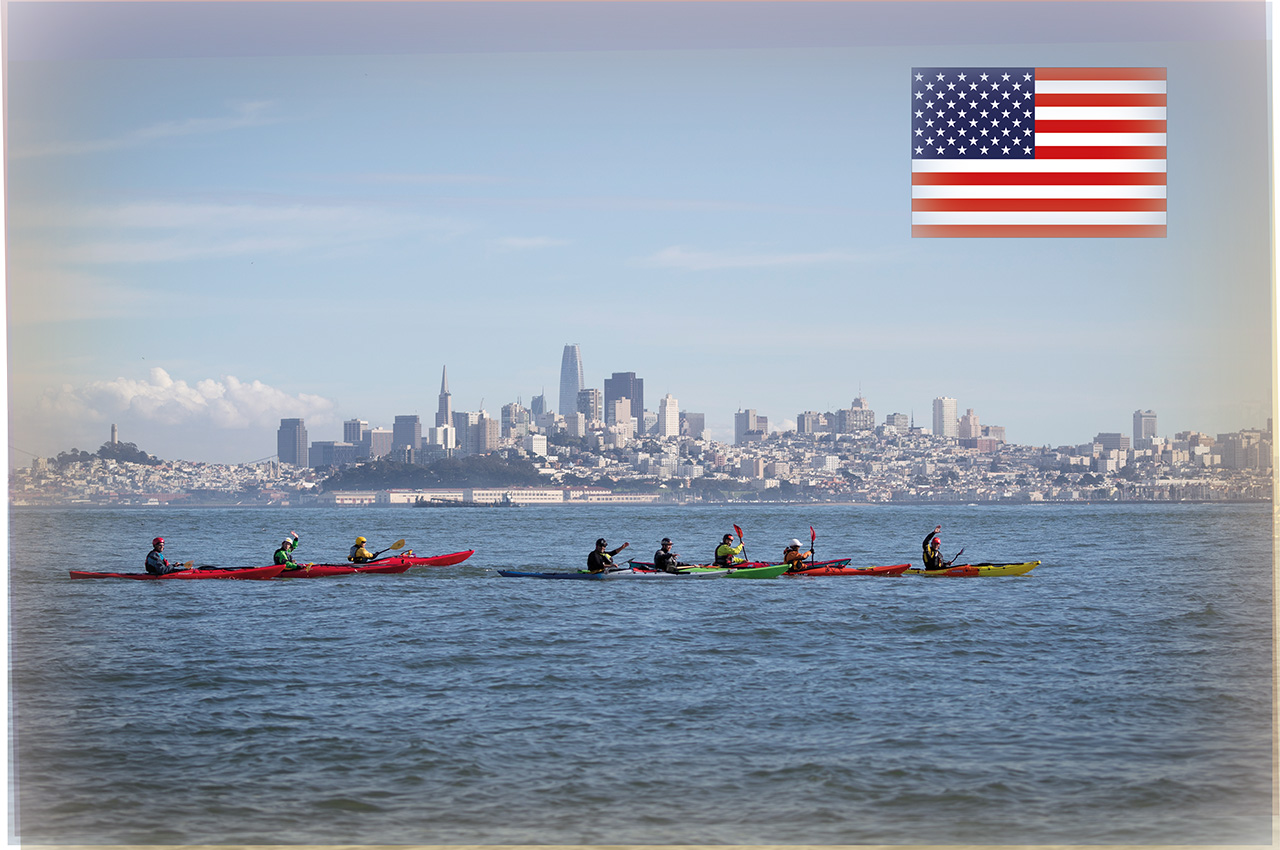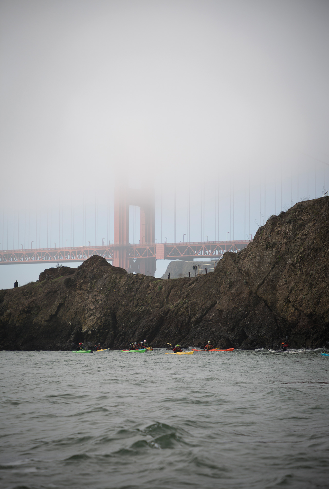 I arrive to an empty parking lot at the Travis Marina, a spectacular San Francisco skyline and the iconic Golden Gate Bridge washed in the early morning violet hues of a photographer’s dream. Today is day one of Paddle Golden Gate (PGG), the premier North American sea kayak symposium. I’ve arrived early to make some tea and to organize camera and kayak gear. Within an hour all available empty space will be filled with cars, kayaks, gear and paddlers filled with stoke for three days of kayak instruction from the best coaches around the globe.