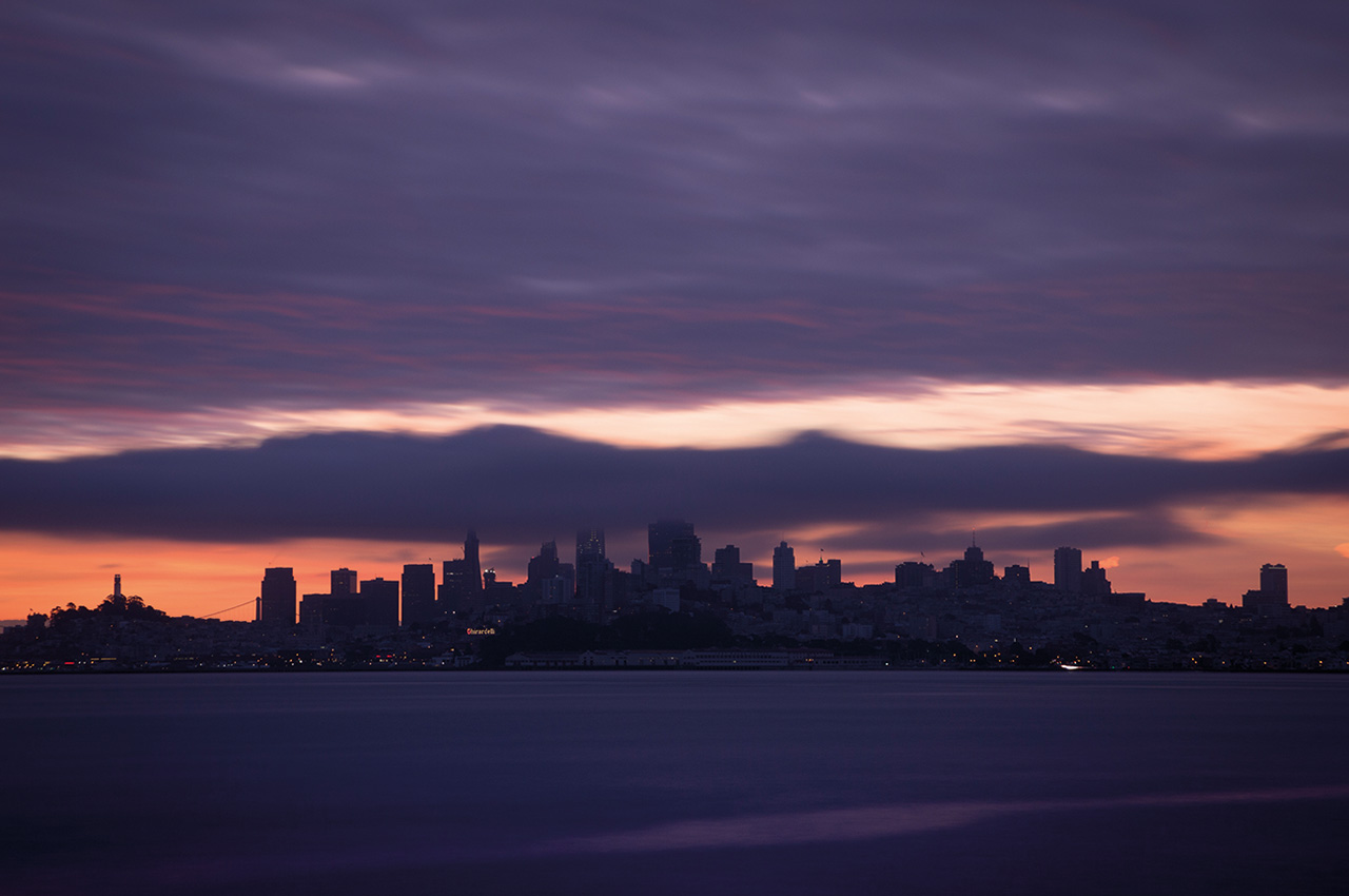 Day three, final day: five-forty-five-ante-meridiem-state-of-transition, stars, cloudless violet hues, sunrise over San Francisco… again. Three days of sunrises so rich you can taste them. I arrive at the marina early to get my kayak kit ready, grab my camera bag and head out to photograph the magical light before the sun brushes the top of the north tower of The Bridge.