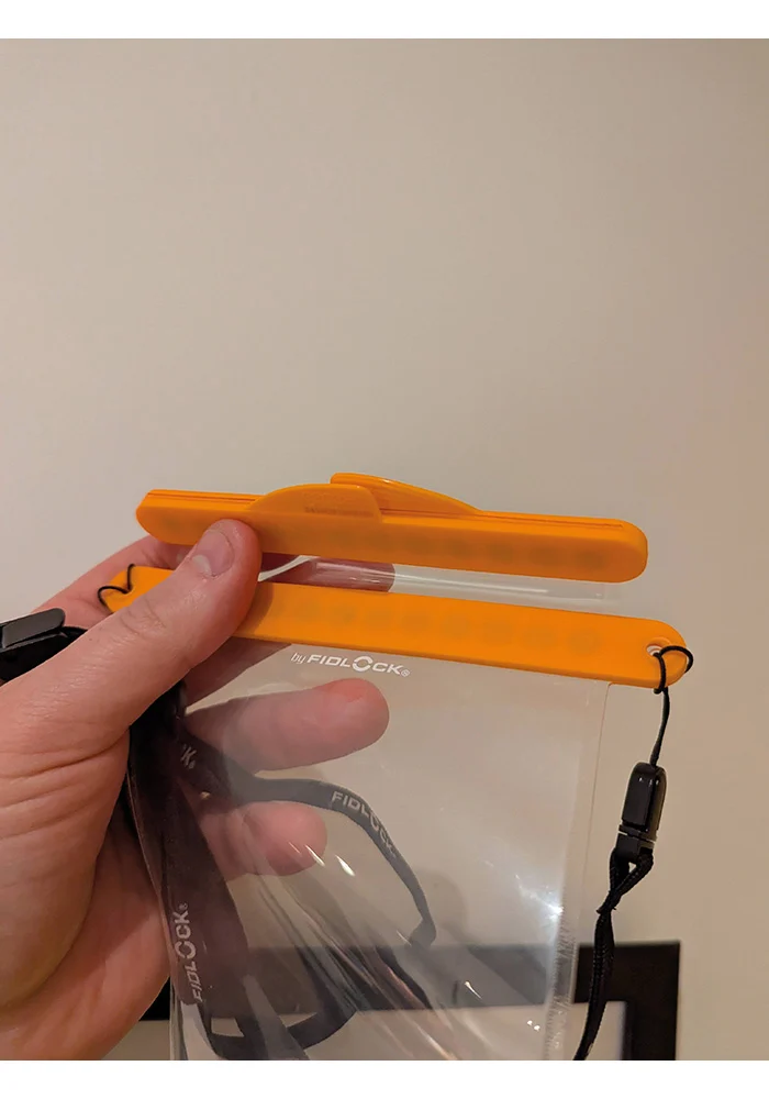 Fidlock, well-known in the mountain biking world, is a German manufacturer of some excellent dry bags and lock systems. Palm Equipments’ new collaboration brings a magnetic and easy-to-use waterproof phone case to the market with no difficult-to-manage clips or fastenings. Simply pop open the magnetic closing and drop in your phone. It feels too easy. That said, the fastening is impressive. What seems like a simple magnetic system is not to be doubted. It has an IPx8 waterproof rating, meaning it’s rated to 30m and has continuous submersion.
