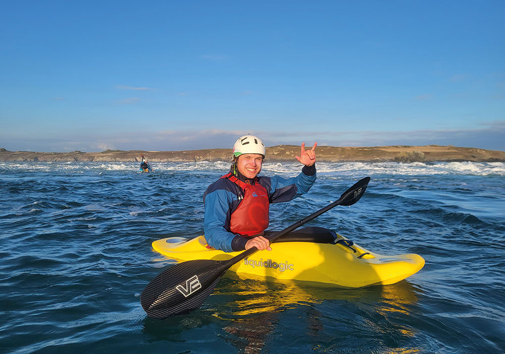 A 15-year-old freestyle paddler, Sophie Macken, loves exploring new places and meeting new people. Fresh from the GB Freestyle team’s world championships, she named slalom and meeting everyone as her weekend favourite parts. She has dreams of one day paddling the Zambezi.
