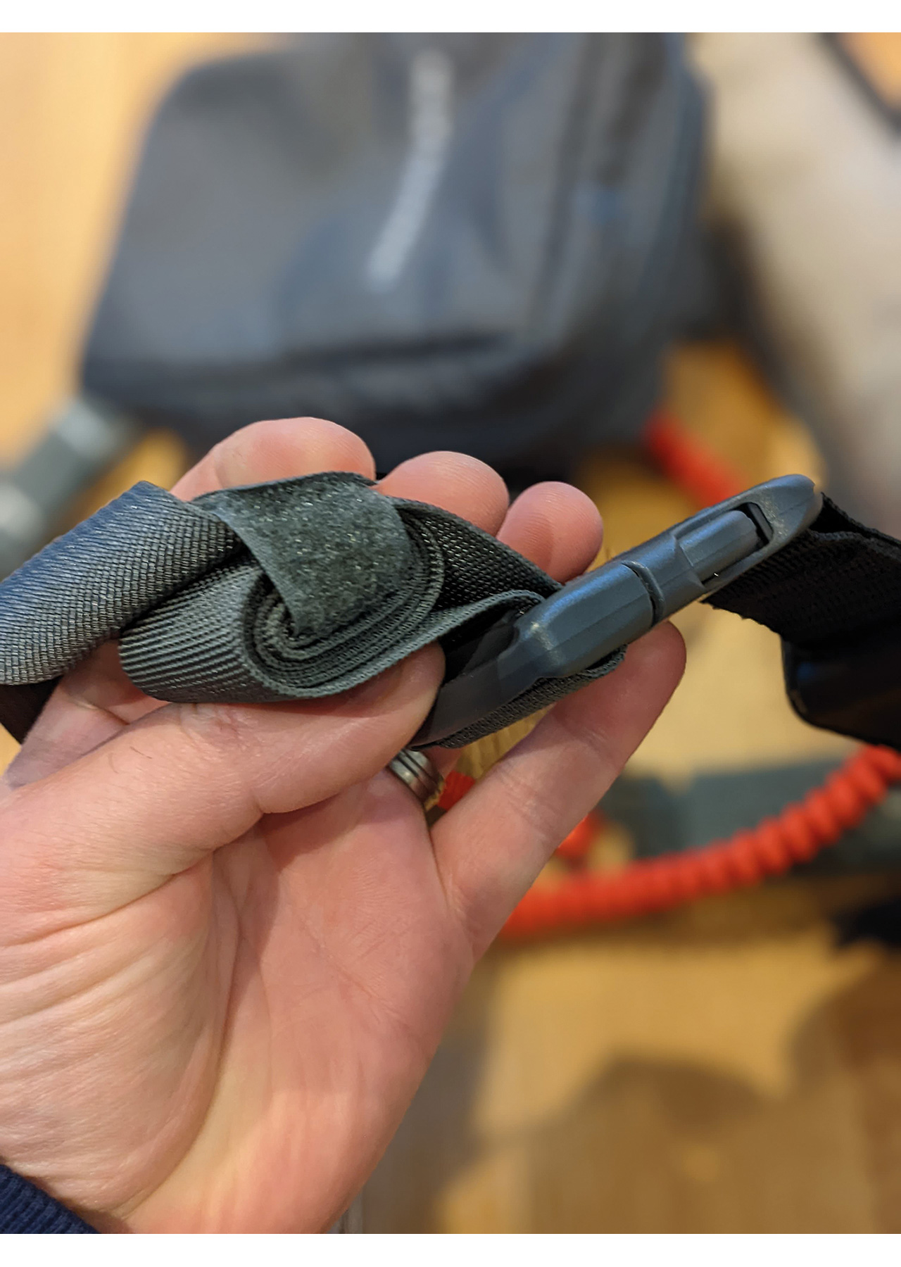 To the rear of the belt, the anchor point for the leash has also been changed; generally, belts have a large webbing loop to attach your standard coiled leash to. This belt does not allow you to do so but does offer a small loop that can be used with a paracord loop to attach to a standard leash if wanting to chop and change your leash for different environments. However, this review also includes Palm’s new quick leash designed for most SUP environments. I will come to that later.