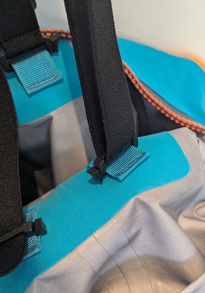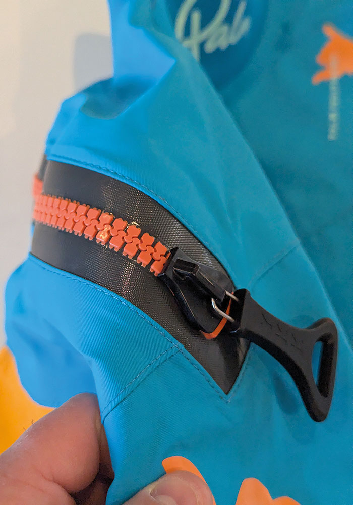 The entry zip is traditional across the shoulders. This is a kayak-specific but multi-discipline suit. Inside are two removable shoulder straps that are adjustable, meaning they can be tightened so that the suit fits just right. We had to fully tighten the straps for my daughter, and that held the weight of the suit whilst she paddled. She didn’t once complain about the weight of the suit; it’s nice and light and fits well, even if a little oversized for her at the moment. The shoulder zip does mean kids will need a little help getting in and out, but let’s face it, most will be paddling with adults or parents/coaches at this age.
