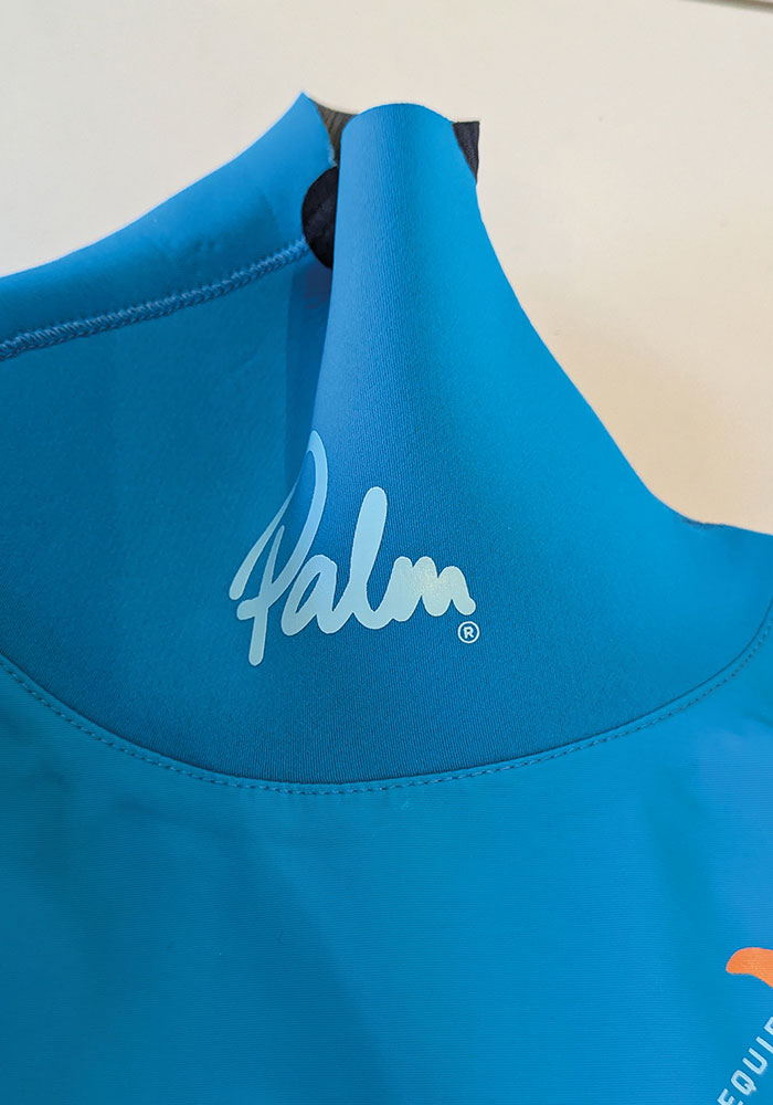 The suit itself comes in a great colourway, Aqua, with some red/orange detailing that matches the Quest range of PFDS nicely. It also features Palm’s Grom logo and a cheeky Haka, which is a nice touch.