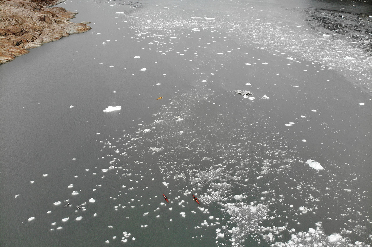 The speed at which the situation had changed – it took less than five minutes to change from a glassy-smooth blue-sky paddle, abstract ice sculptures reflecting serenely in the mirrored surface of the fjord, to a challenging battle through a dense icepack in 30-knot winds – took even the experienced paddlers among us completely by surprise.