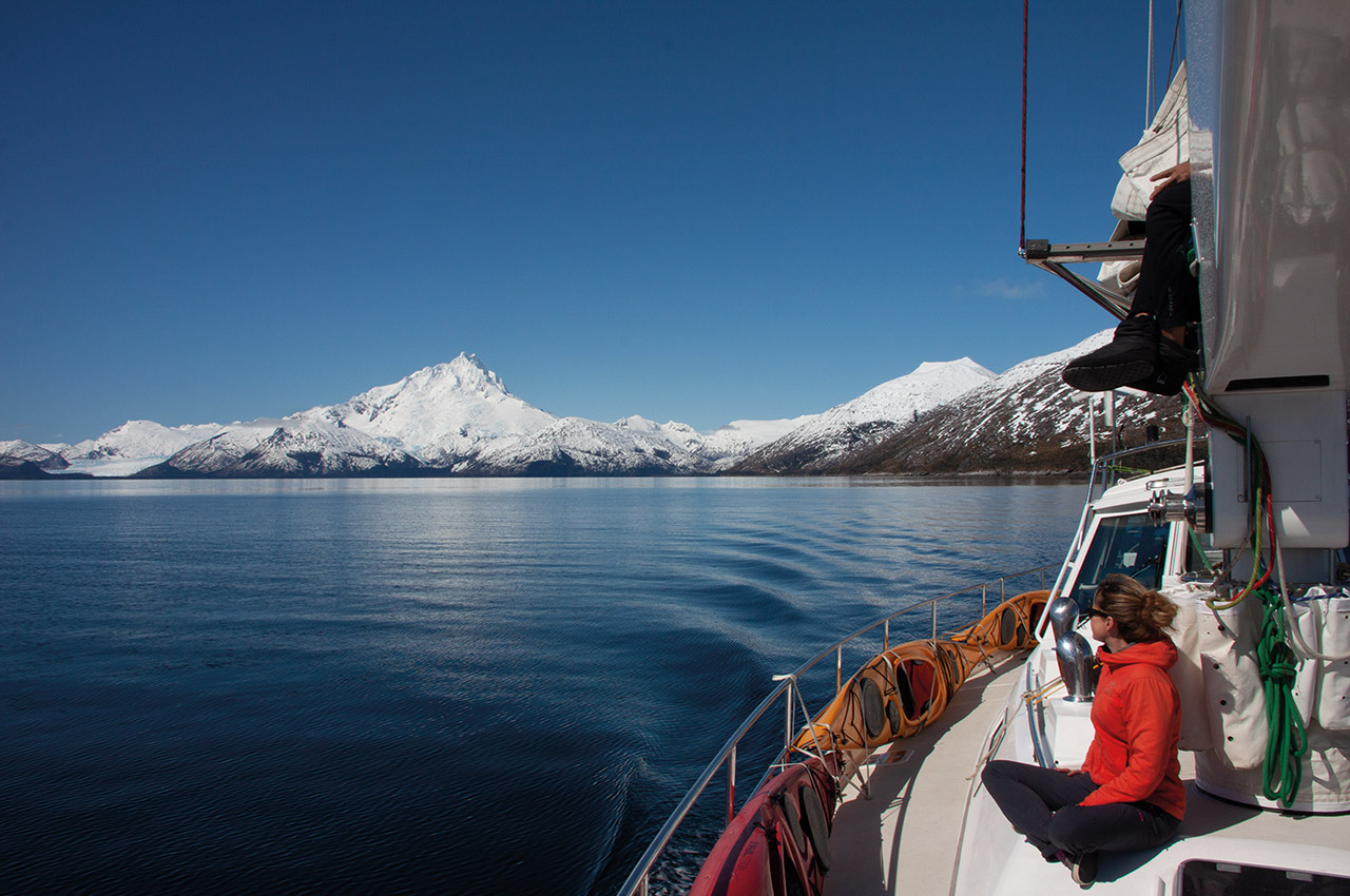 It’s also one of the most dramatic, with jagged peaks tearing at the clouds, blue-grey glaciers tumbling stop-motion headlong into deep, dark waters, and everywhere waterfalls plunging, free-falling down mountainsides to the sea. The climate hasn’t changed much from Darwin’s time, with a typical summer’s day including rain, snow, 30-knot winds and single-digit temperatures – sometimes all at once.