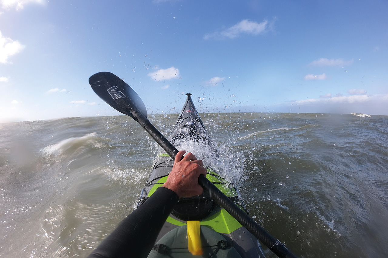 According to the many questions I got from fellow paddlers, you want to know how the boat surfs? For me, this was the biggest surprise! I’m used to surfing the Delphin, and I love its characteristics. So, for surfing, I was biased towards the Delphin, and I had reservations for the Volan on that level. The Delphin/Aries still has the most rocker. I started with very mild surf and built up to the rough stuff (from 0.5m to 2m average wave height).