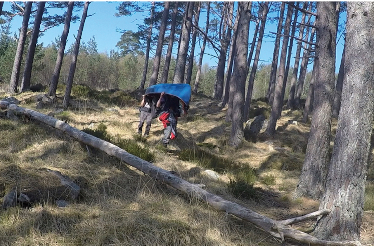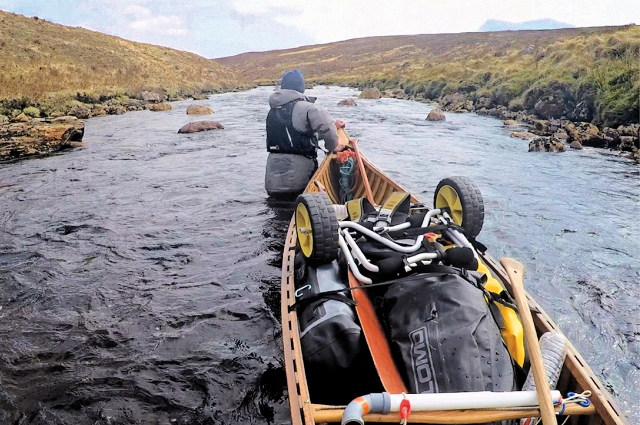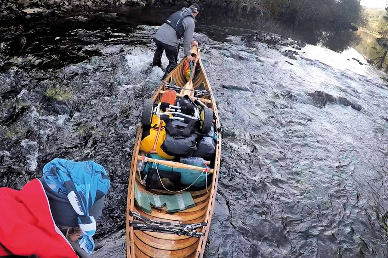 The river became progressively rockier as we neared its steepest section. The rock density increased to the point where it was quicker to portage, so we flipped the canoe up top for a half-mile section. The way ahead did not look immediately promising. Whenever we feel that things are getting tough, we like to remind ourselves that we are only really playing at this compared to the ‘Real Thing’. A case in point is a couple who dragged, lined and portaged their canoe for 11 days to reach the Coppermine river system in Canada’s Northwest Territories. And this itself is relatively modest compared with feats recounted in the old explorers’ journals.