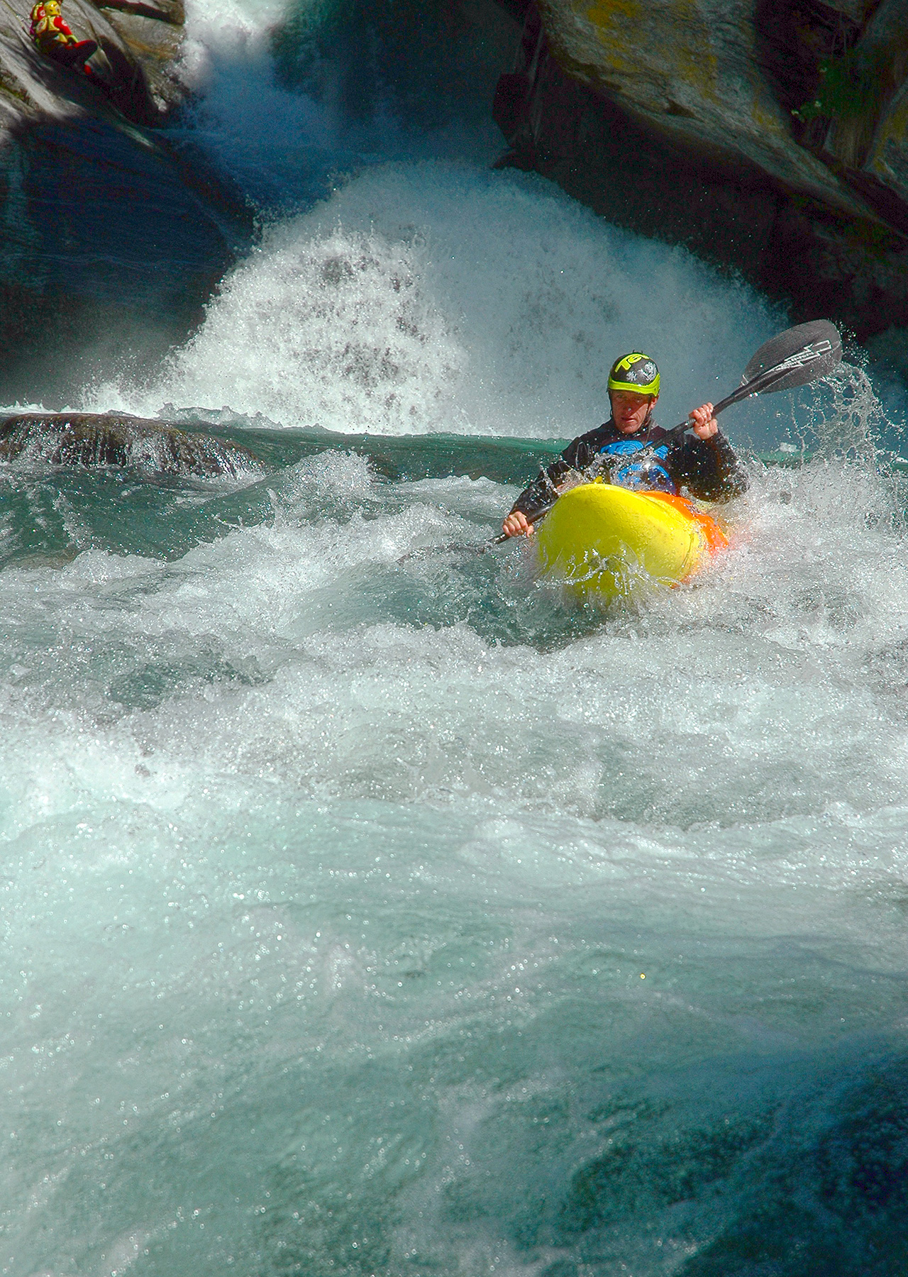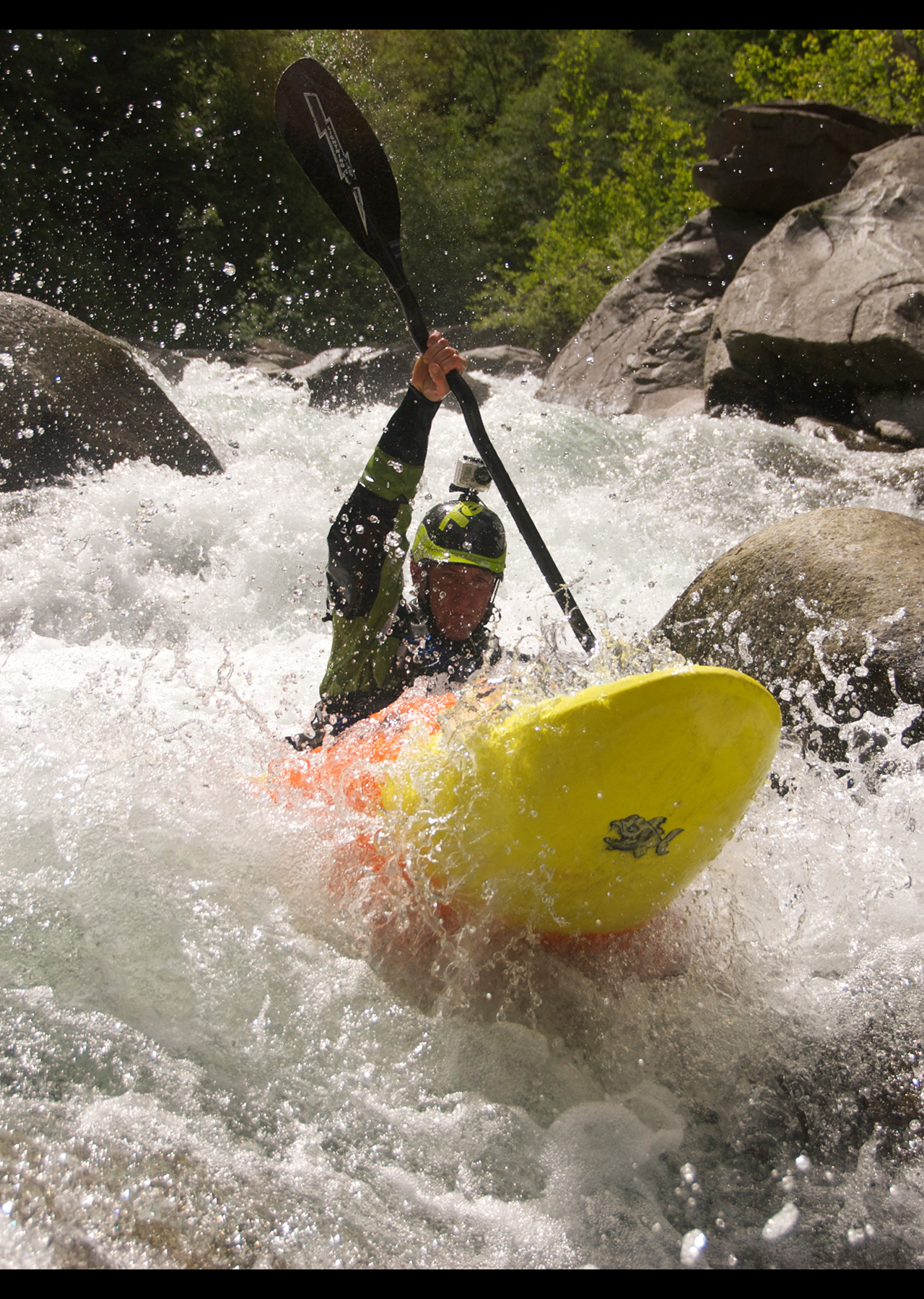 Mid-week we blasted down to the Aiasse River in Italy for the Teva mountain games. This event was a small affair hosting a limited number of top paddlers. Over two days we ran the team and individual races on the California section and then the king of the falls competition on the slides below. Probably the toughest racecourse I have ever done, even took a swim during the team race out of a hole everybody was avoiding. I did not mean to go in. The king of the falls race was my style of racing, short and steep ending in a sizable multi-move slide. Bain and myself took fifth and sixth overall.