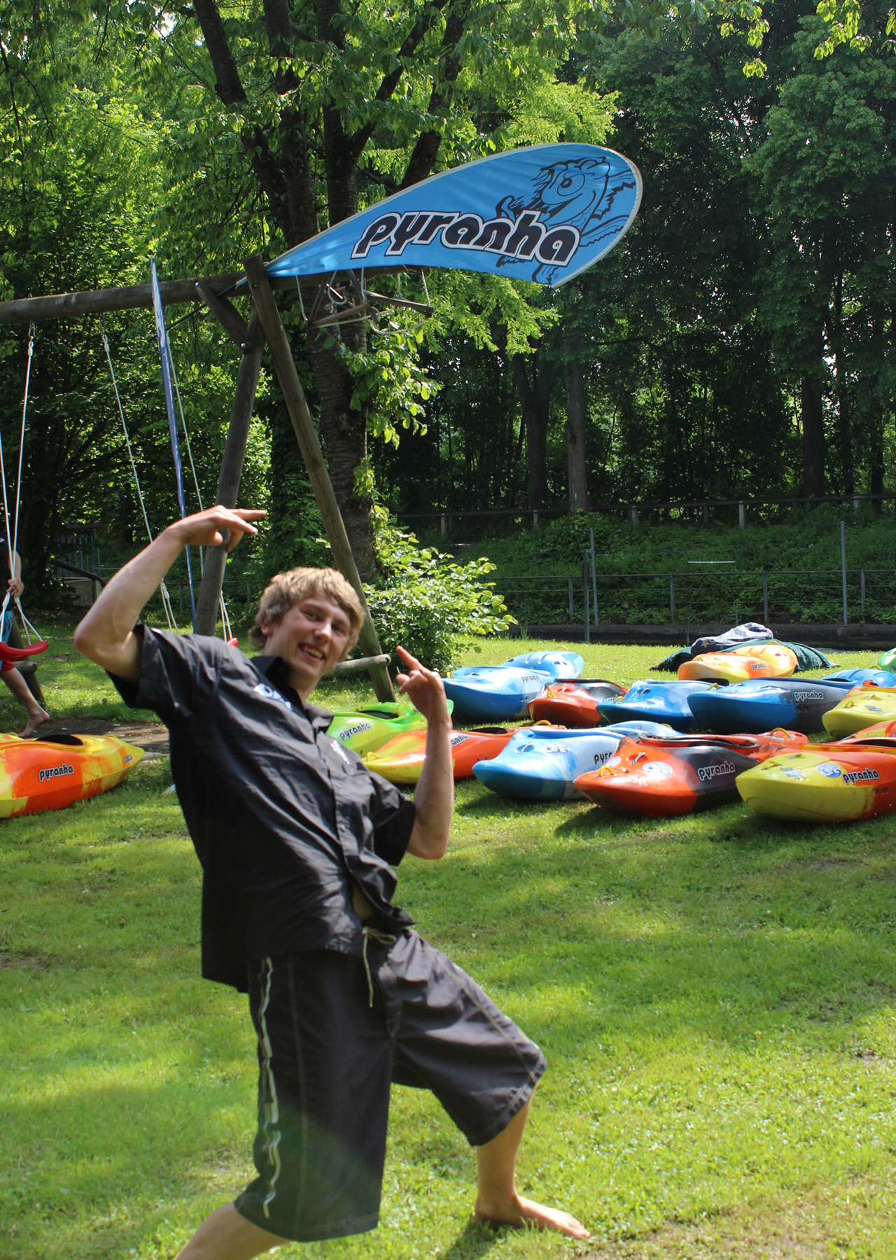 Strait after prize giving, we jumped back in the van and drove strait to Augsburg to meet up with our German dealer Wolfgang and Tomas Funk from Kober paddles at the slalom course to run a summer fate style open day with gear sales, demos and coaching. My highlight of the day was David taking an eight-year-old lad who had never been in a boat before down the course in a duo. The kid’s face was a peach as he was slamming through holes and probably cursing his dad in German for making him do it. He was in good hands, David glided down the course delivering the young man back to his father who was ecstatic. The boy could only say one thing, “Papa, could you buy me a kayak now instead of a football.” Priceless ☺