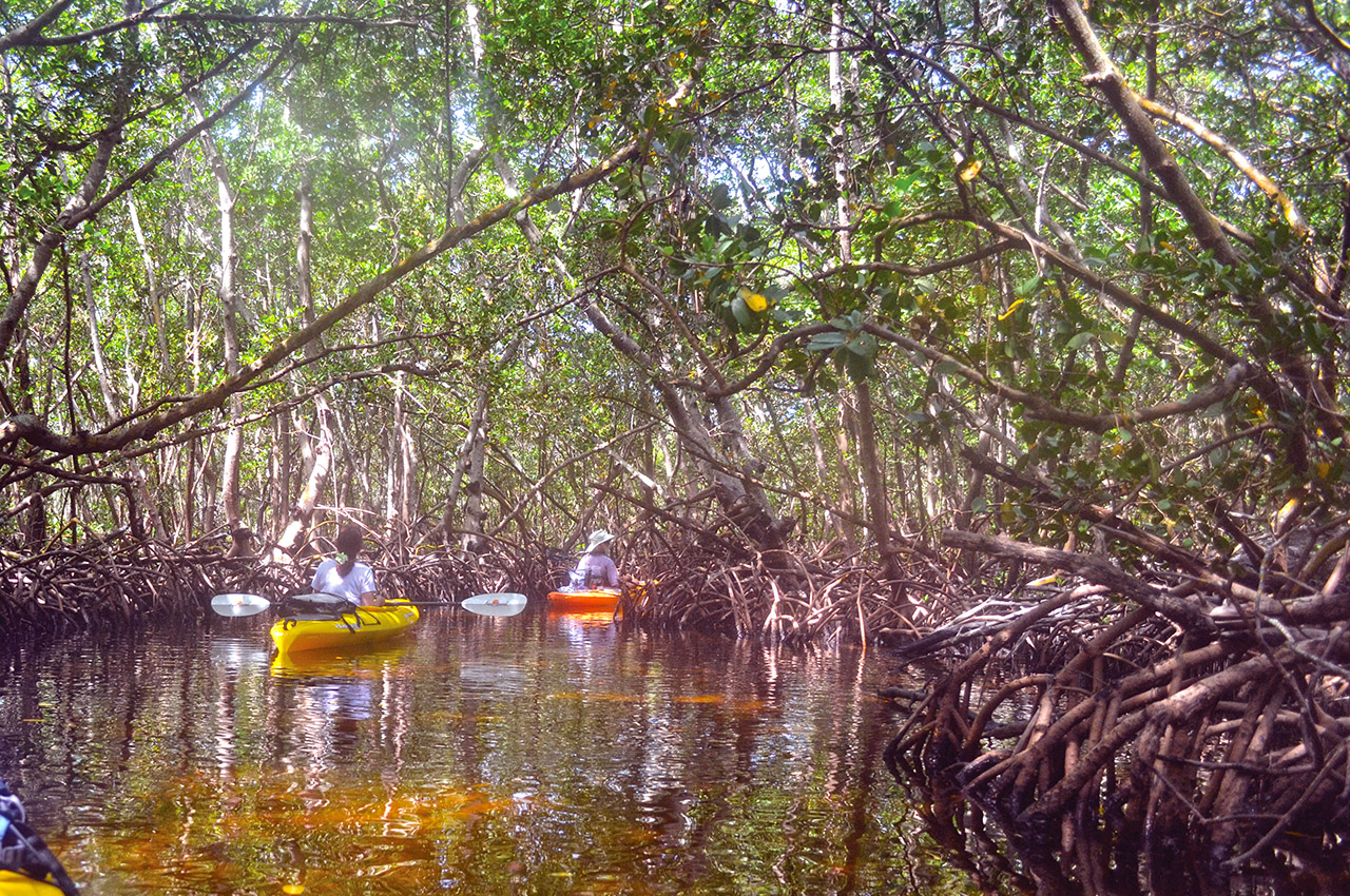 Since we live in south Florida, our favourite spots to paddle are amongst the narrow canals deep into the mangroves. When you get far enough into that ecosystem, you’re fortunate enough to witness the wild habitat in its most natural state. It’s hard to explain the feeling when a dolphin swims near our kayak but we start to feel like one of them, as crazy as that may sound. It’s also very easy to get lost within the intricate framework of canals but there’s something romantic about that adventurous feeling. We always pack some extra water and food just in case we drift into some Huckleberry Finn type of experience.