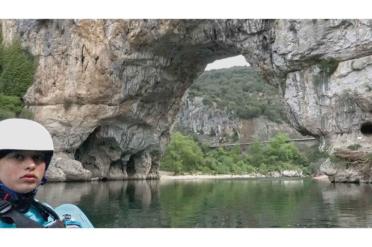 When you see it in the middle of the river, you will know why House Rock is so called, followed by an easy rapid, an awkward one, and then le Charlemagne Rapid (sometimes known as Pont d’Arc rapid). We were paddling it at a reasonably low level, so the rapid is littered with rock and threaded by several channels. Difficult for the novices on hired sit-on-tops but for a paddler, a delight to play down, working eddy to eddy just for the fun of it. Maya had me under manners and her system. She liked to know what we were about to do and where we were aiming. Then would run through her turning strokes to confirm. She was often asking me to confirm when she should do them.