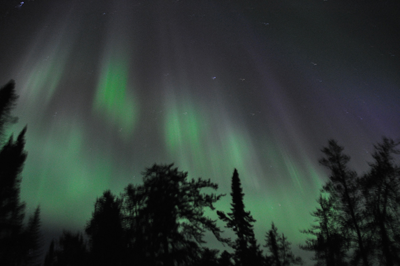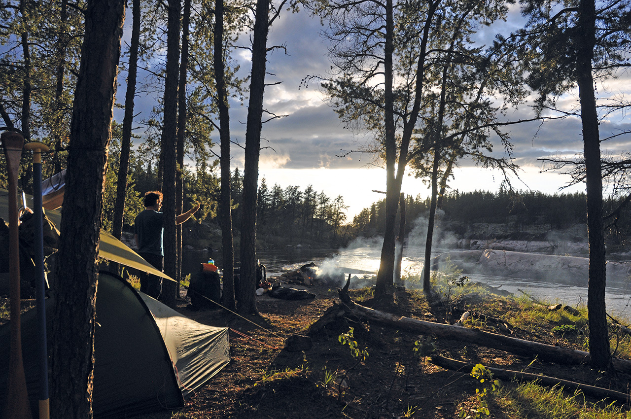 The air was cleared and the weather became kinder. Some days later we were camped high above the river when we noticed a faint glow on the northern horizon. As it grew darker, the green light shimmied and danced into being – the Aurora Borealis was putting on a spectacular display. Great curtains of light danced around us until all of us were too tired to stay up for more. The contrast between the nights of storm and the colourful display above and yet the awe was just the same.