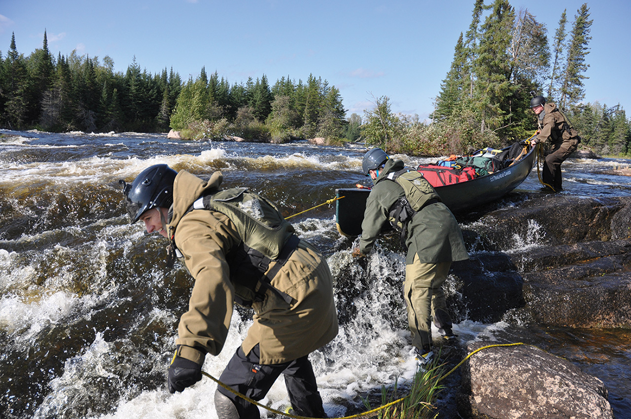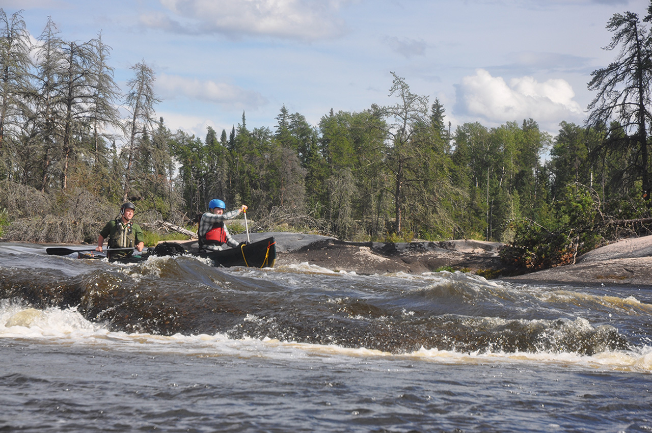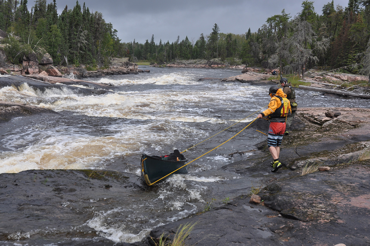 Rain had been falling for days and the river had risen quickly. Rapids that were Grade 2 had become 4 and monsters at that! Portages became bigger and we were even lining the boats down a portage trail at one point. I was the guide and I was under pressure. We had an agreed finish date and air tickets booked. This is a bad pressure in the wilderness and begins to affect the decision making.