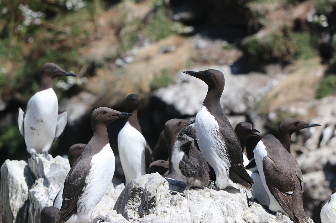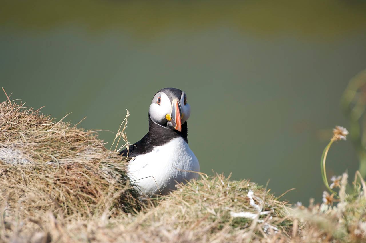 We climbed up onto the first terrace and although we were sharing it with tens of other folk, it still felt an intimate experience. Puffins with bills full of sand eels were coming into land just a couple of metres from where we stood. Quickly scurrying along they disappeared underground into their burrows. Some recent research seemed to indicate that the puffins came in more frequently when there were people about. Apparently the larger predatory birds were put off by people so the puffins had an easier run.