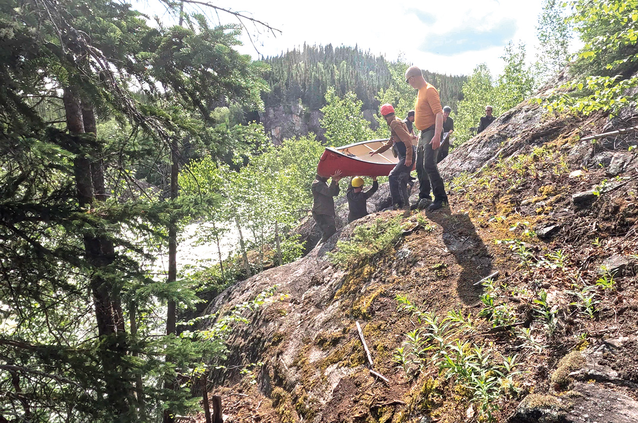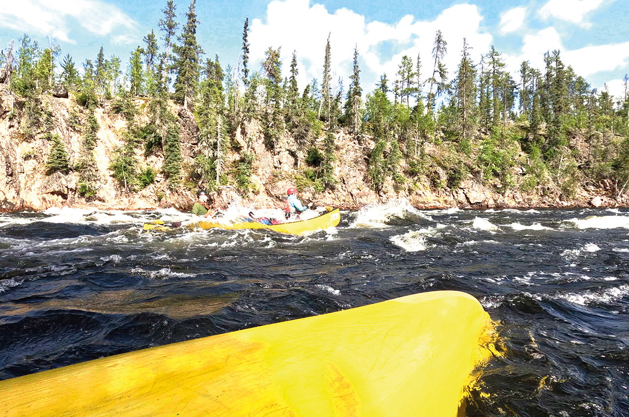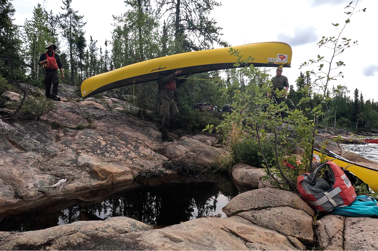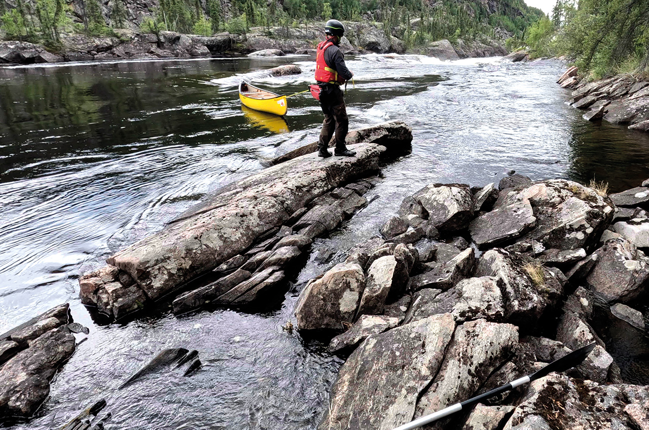 We ran some, got creative on one and lined or portaged others. On one portage, the canoes had to be handled along rock ledges and down drops, terrain more familiar to a mountain leader than a canoeist.