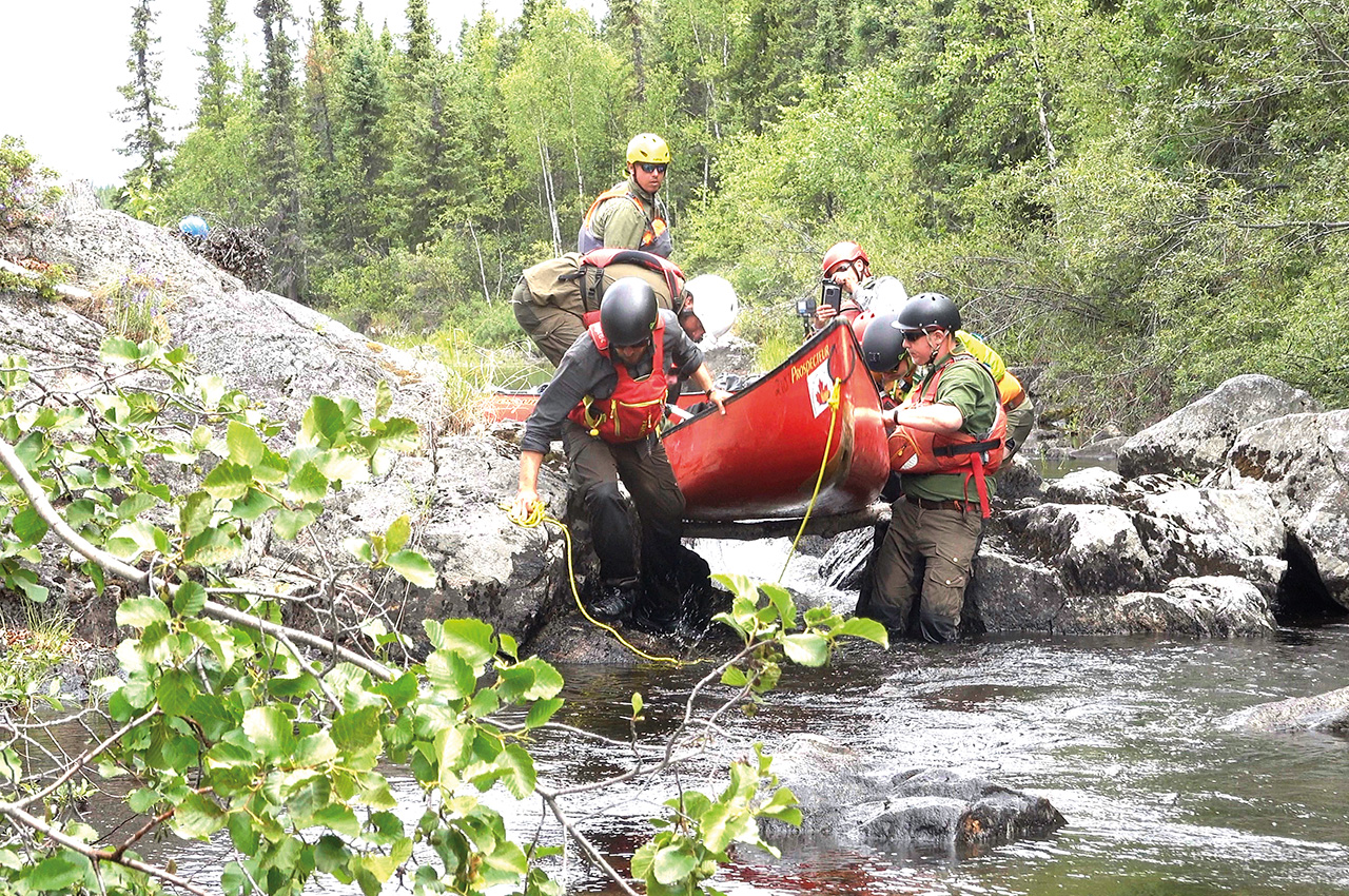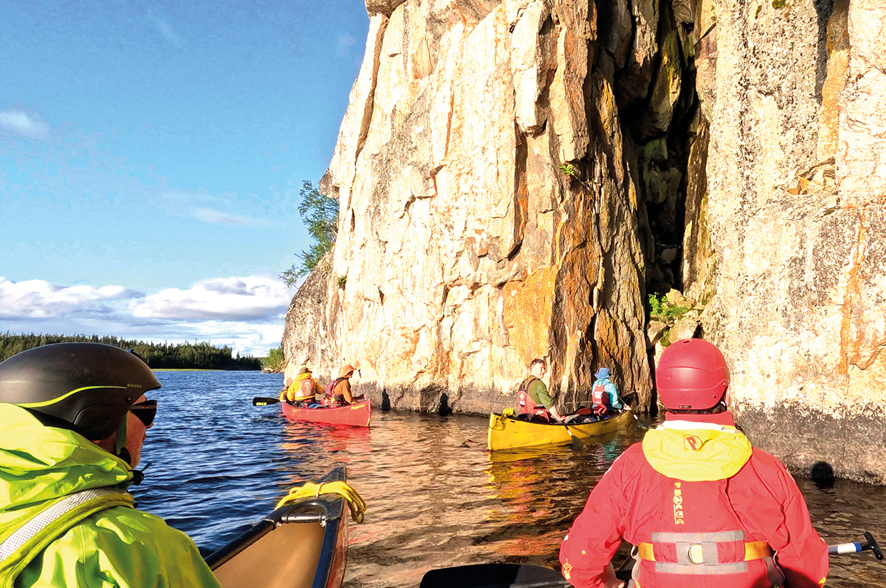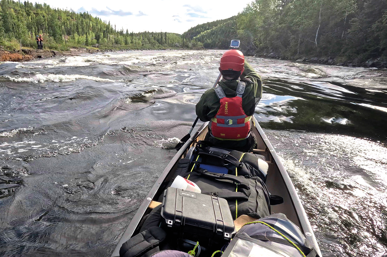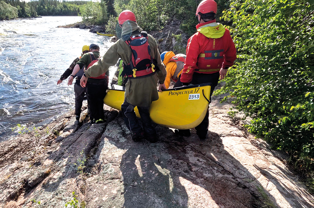 We ran some, got creative on one and lined or portaged others. On one portage, the canoes had to be handled along rock ledges and down drops, terrain more familiar to a mountain leader than a canoeist.