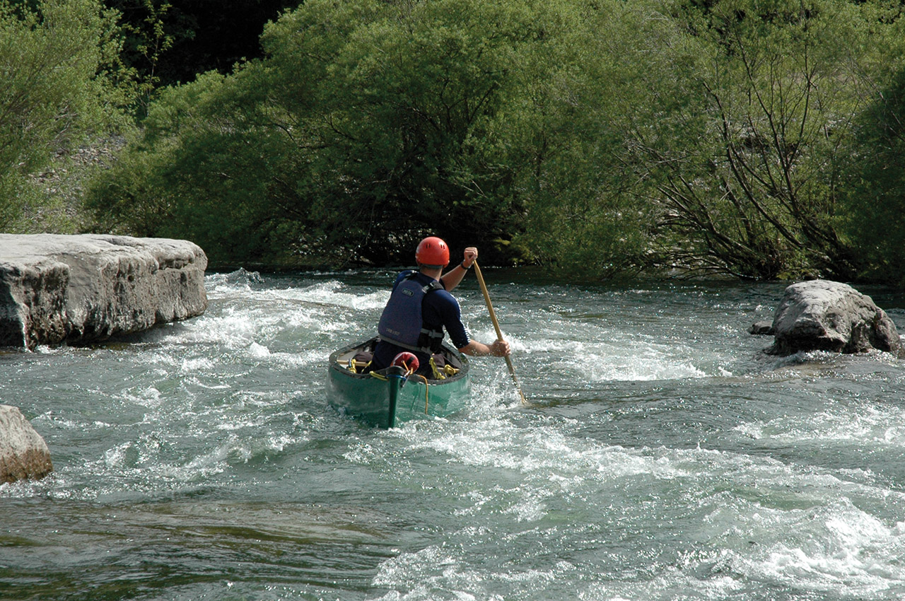 Moving the boat sideways while moving forwards is an essential skill that can get you out of difficult situations. As an example, it is often easier to miss an obstacle by moving the boat a short distance sideways using its momentum, rather than trying to turn and ending up broached on the rock you were trying to avoid. So in all the following descriptions, the canoe is moving straight and forward before applying the stroke.