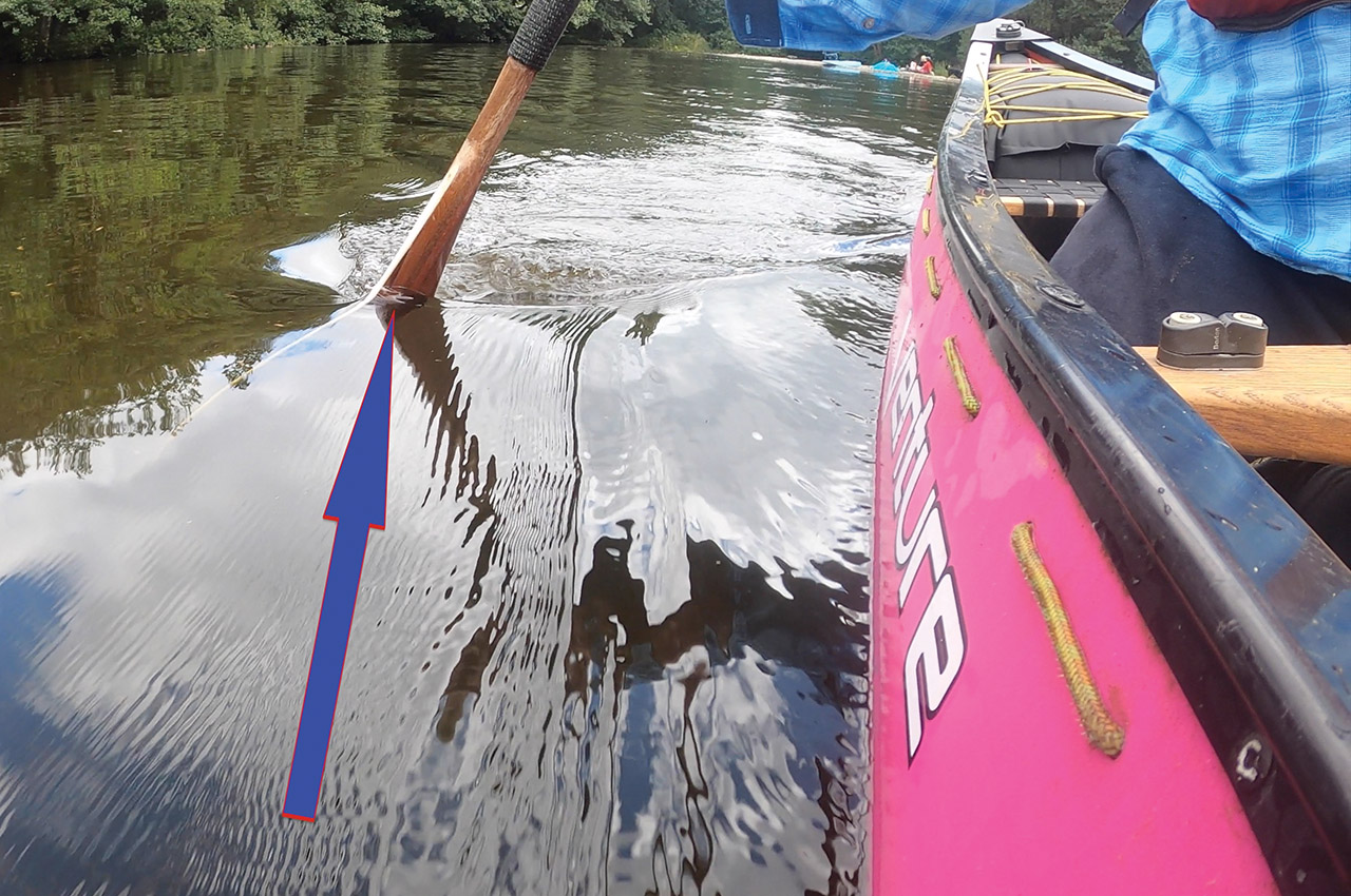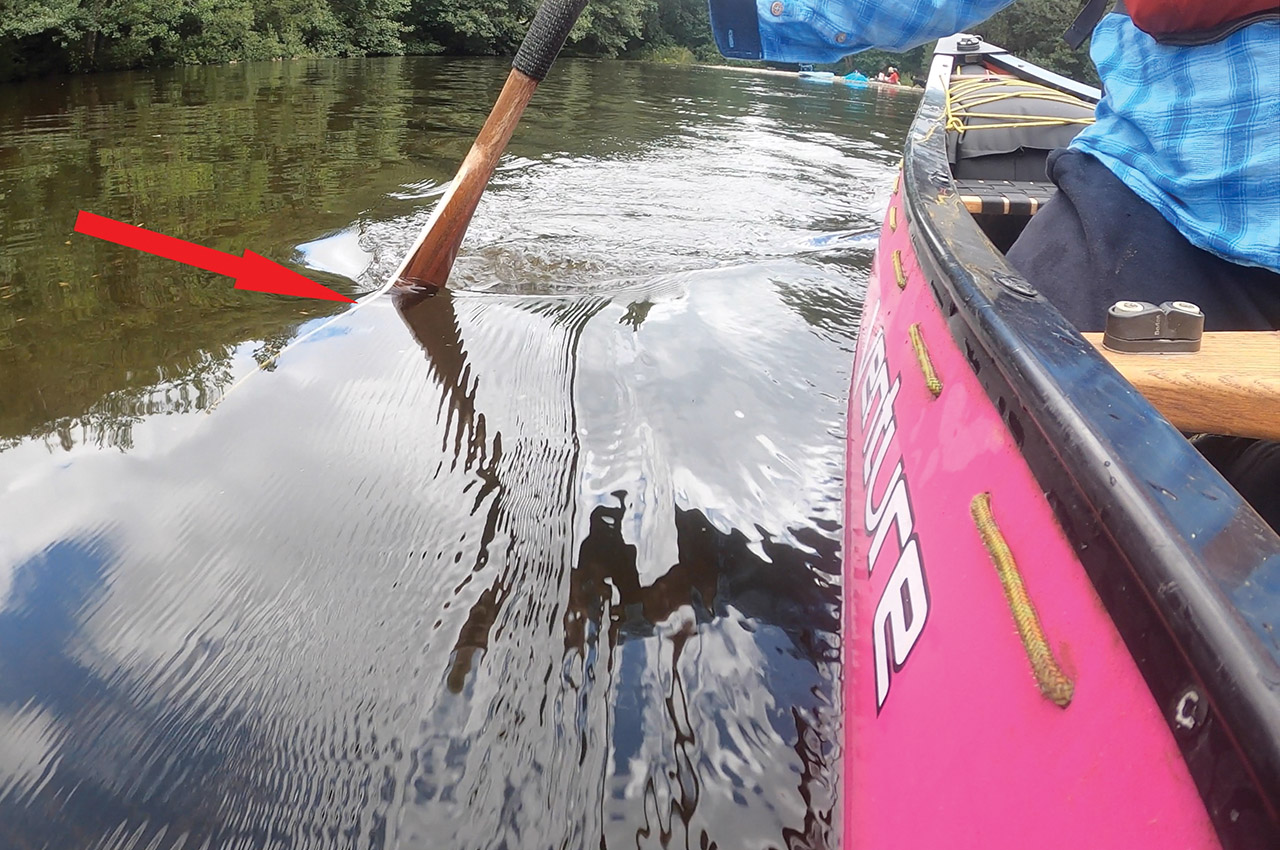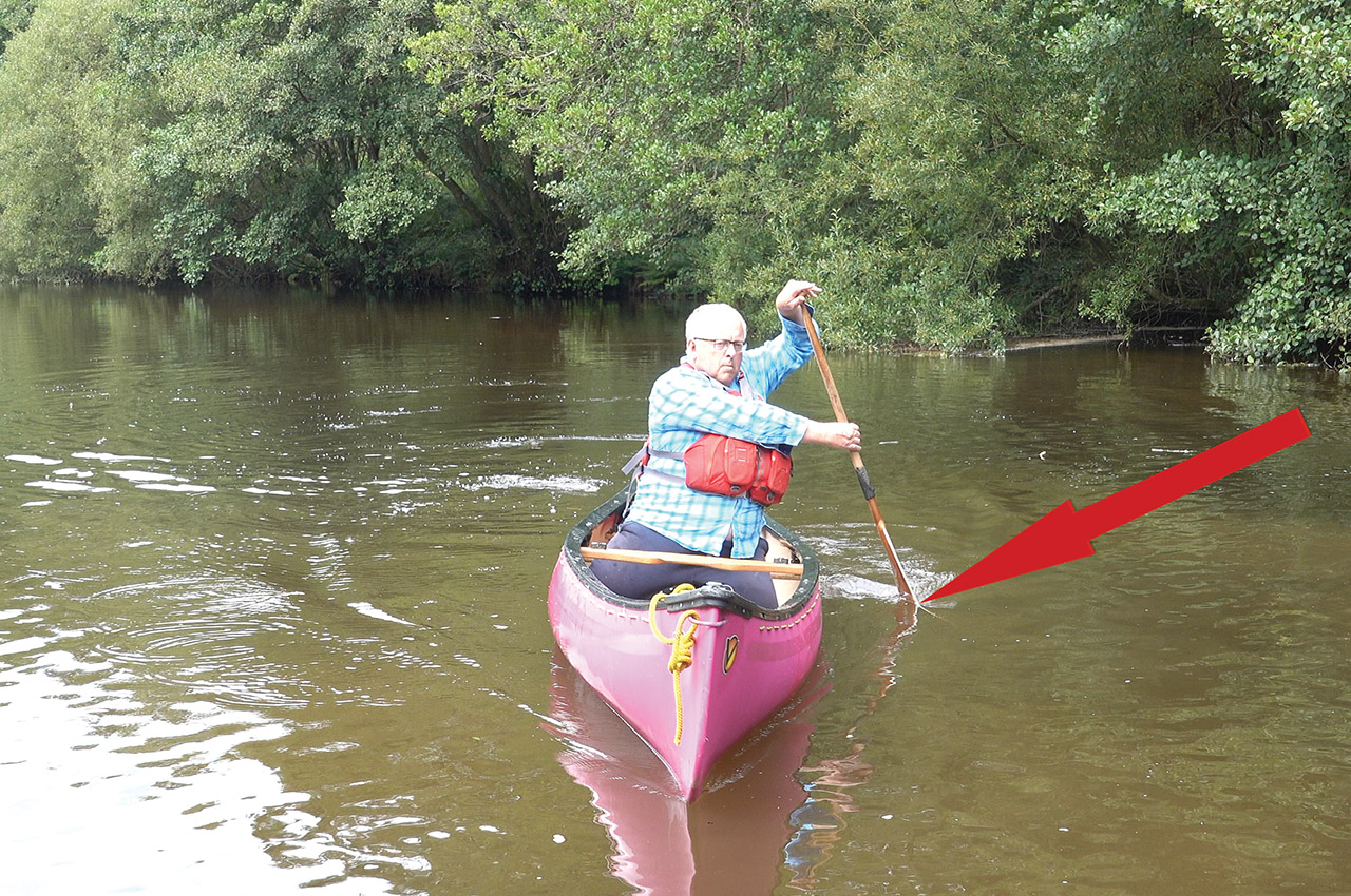 There is rarely a perfect spot for the paddle, and the best of us will make minute adjustments as we move. The canoe often starts to turn rather than move sideways. If the canoe turns to the paddle side, close the blade’s angle so that it is slicing parallel to the boat and then move the paddle back and reopen. If it turns away from the paddle side, move the blade forwards. A real key is not to give up if the canoe starts to turn but to keep with it and move the blade.