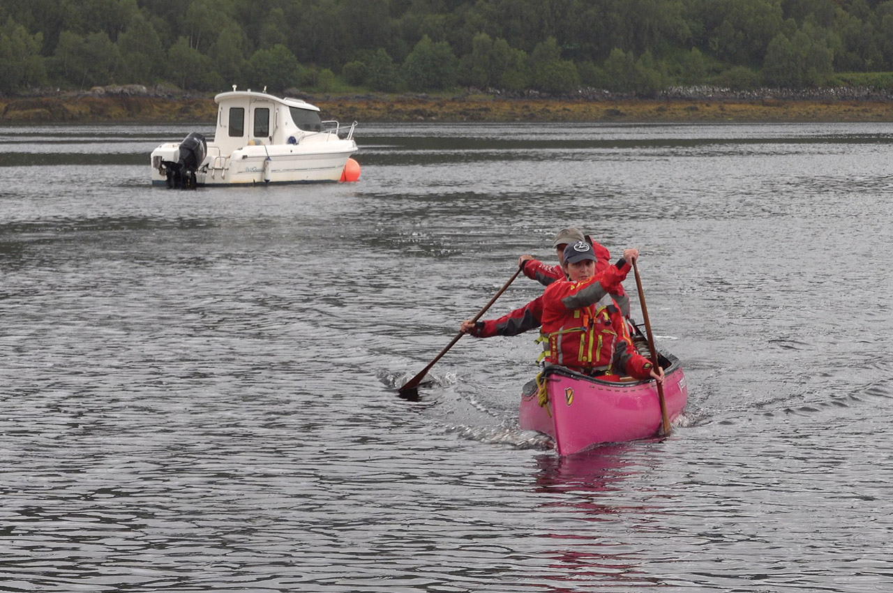 When sideslipping a tandem canoe, the idea is to go from travelling forwards in a straight line to travelling forwards and sideways. It is satisfying and slick when done well. Several different strokes are combined, the action of the bow paddler being matched by the stern. It is an awesome exercise in teamwork.