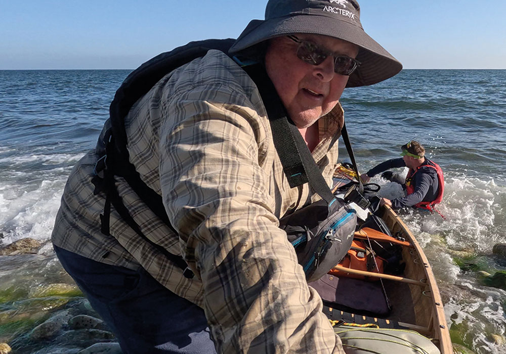 We had one brief break behind a small headland. It allowed us to discuss this plan that had us paddling into a force 3 to 4 for most of the day. Although it was an agreed-upon plan and a good one, it still allowed us to berate Dave (so unjust). I took the opportunity to explain that any slowness on my part was due to my age of 72 years, which was more than their combined ages. It’s good to have an excuse.