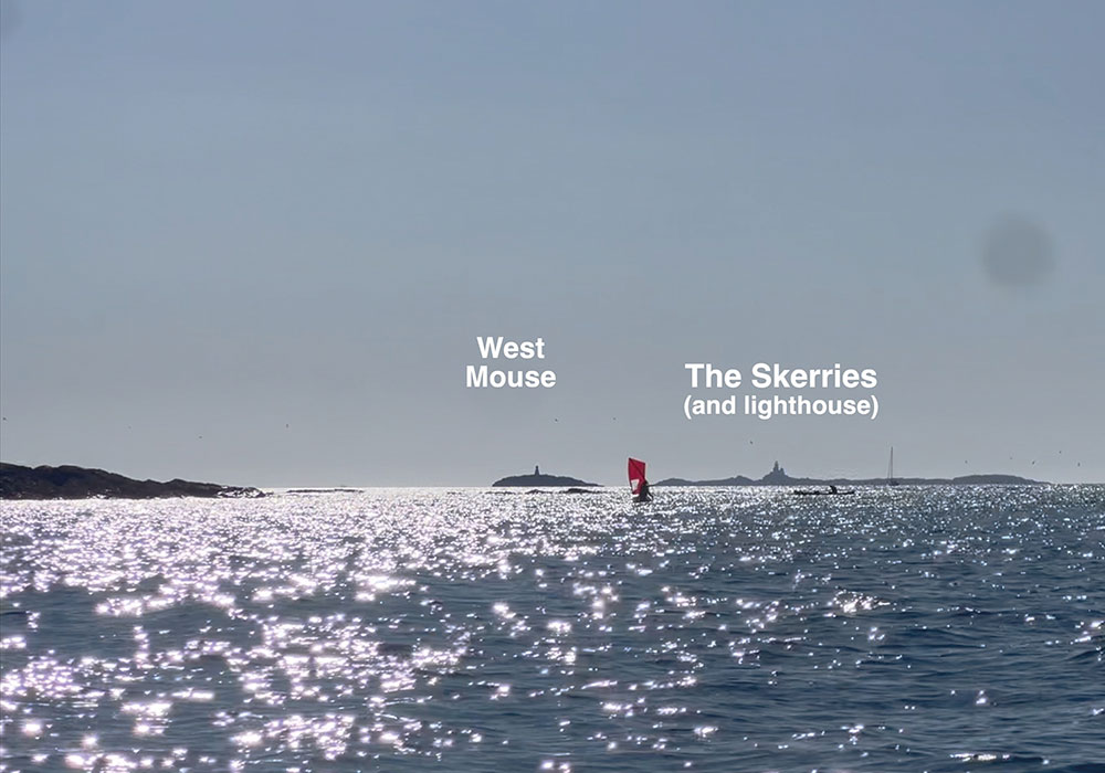 At Harry Furlough’s Rocks, a small reef runs out to sea. Here, flocks of terns were fishing, taking advantage of the shallow flow. Their shrill cries and headlong plunges filled the air around us. Out to sea were the Skerries and their lighthouse, always an incredible sight and a favourite paddle.