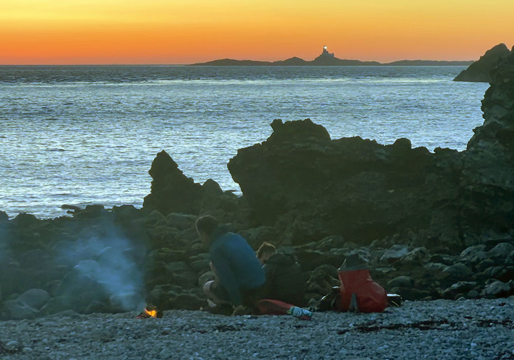 It is a beautiful spot with stunning views out to Puffin and beyond. It had been a very long day, and we were all soon in our tents or bivies.
